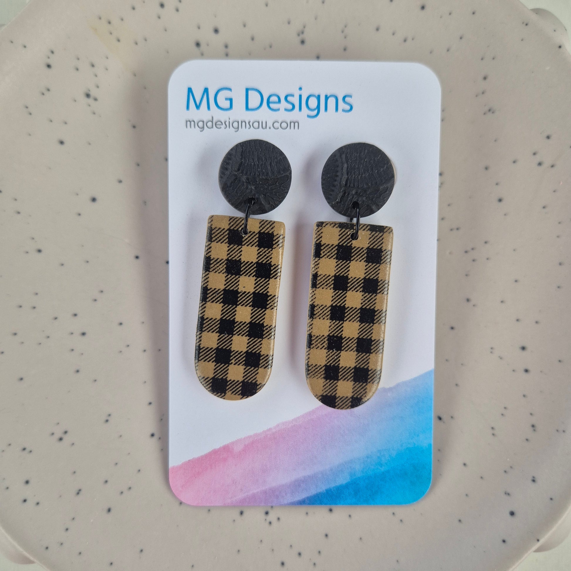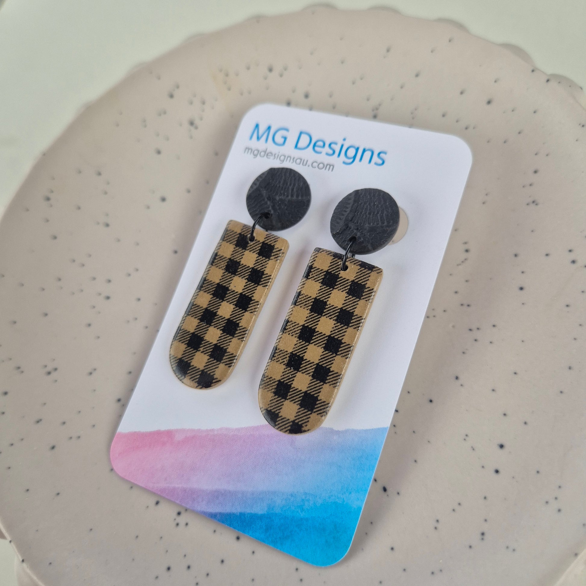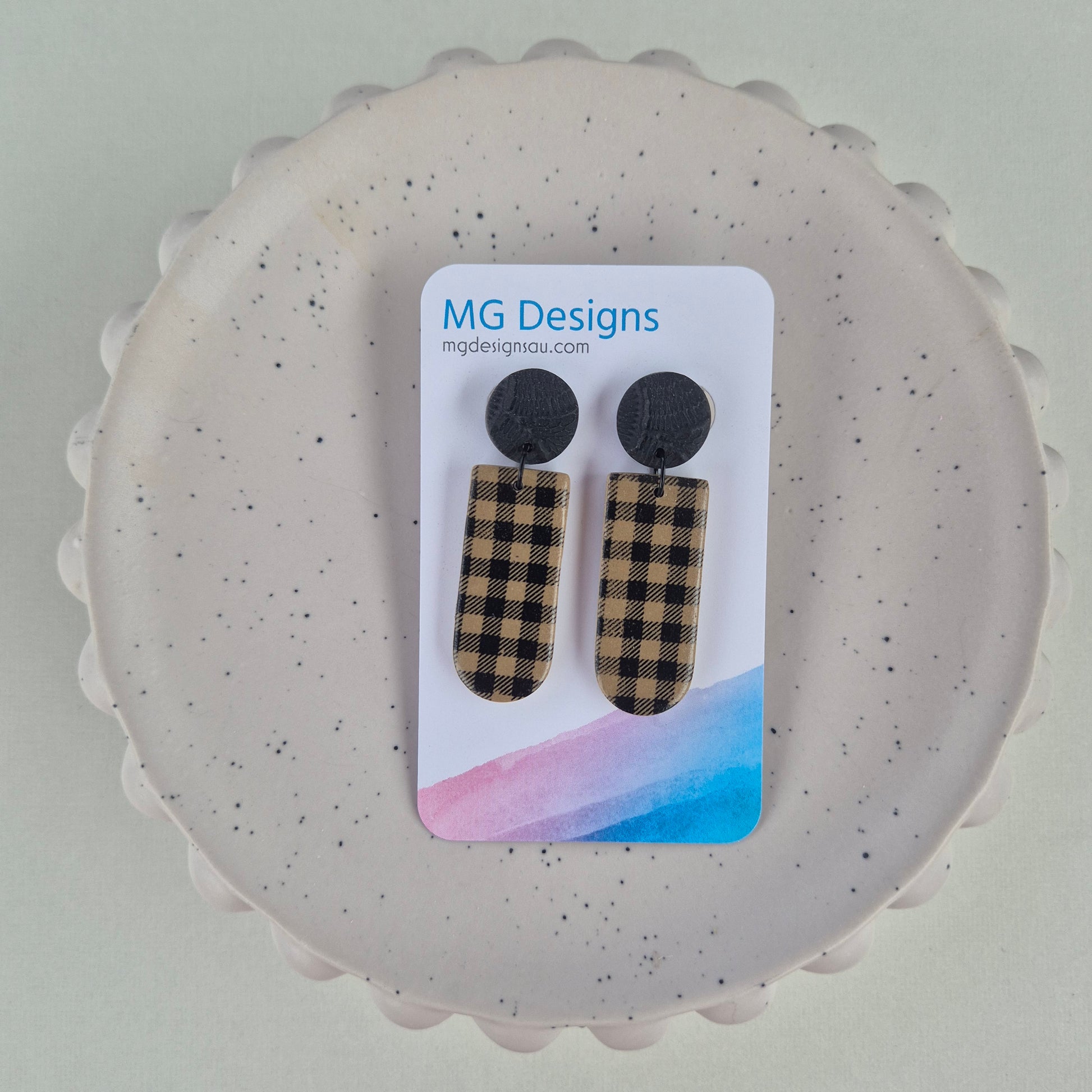 Our Alexis earrings, are delightfully unique in each piece. All handmade with silk screens and acylic paint and polymer clay. The black and brown color combinations provide an eye-catching aesthetic, while the lightweight construction provides comfort and convenience. A perfect accessory to make any look pop.