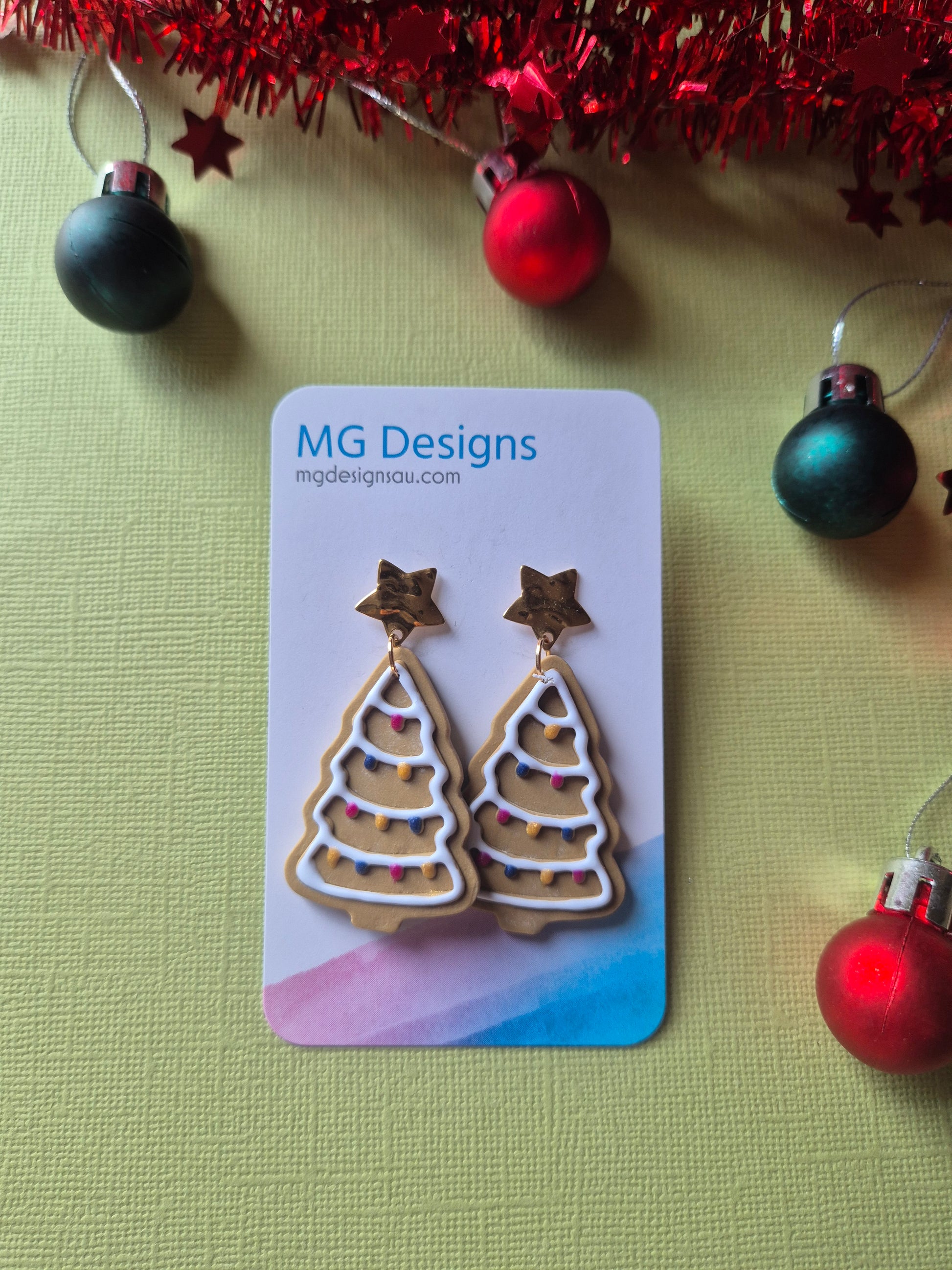 Get into the holiday spirit with these festive Gingerbread Tree earrings! The white icing detailing adds a touch of sweetness to your look. Perfect for Christmas parties or as a unique gift.