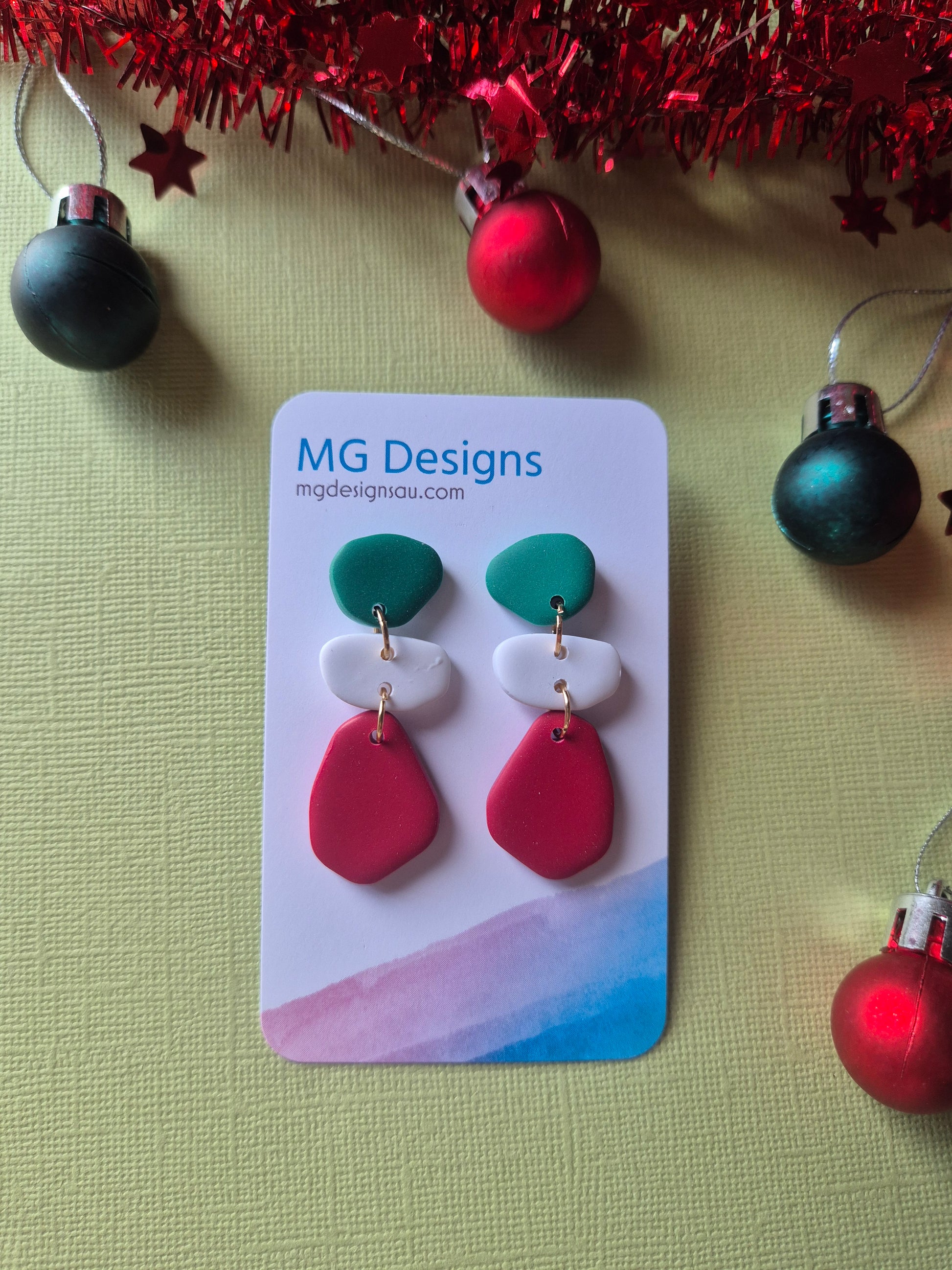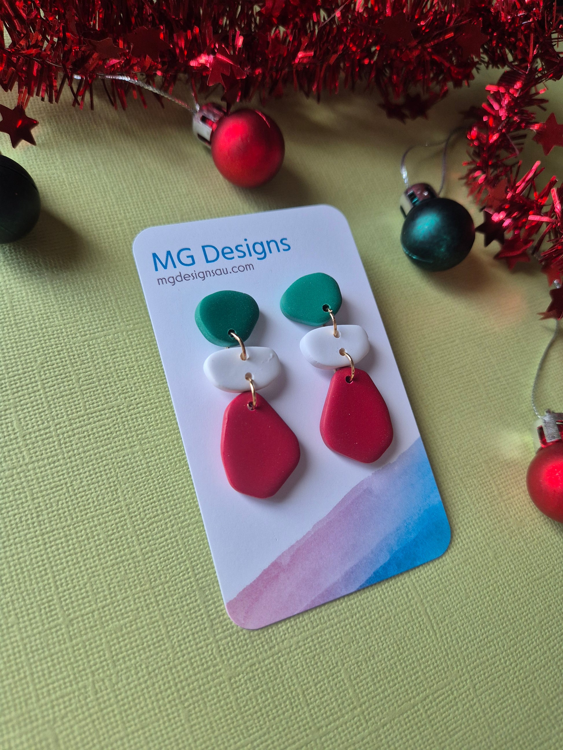 Expertly crafted with a festive, pebble-shaped design, these white, red, and green earrings add a touch of whimsy to any outfit. With a simple yet unique style, The Flossy earrings are the perfect accessory for any occasion.