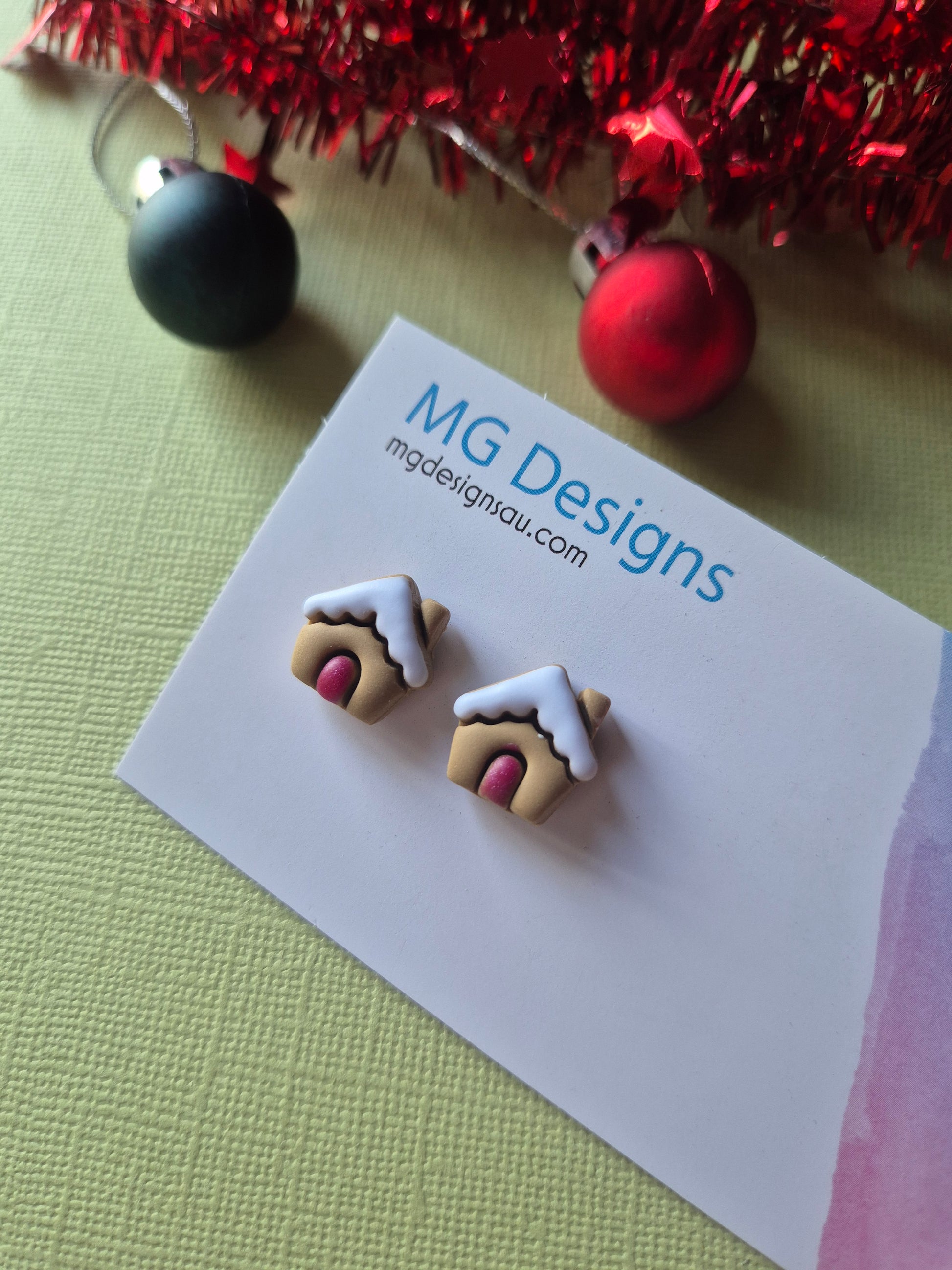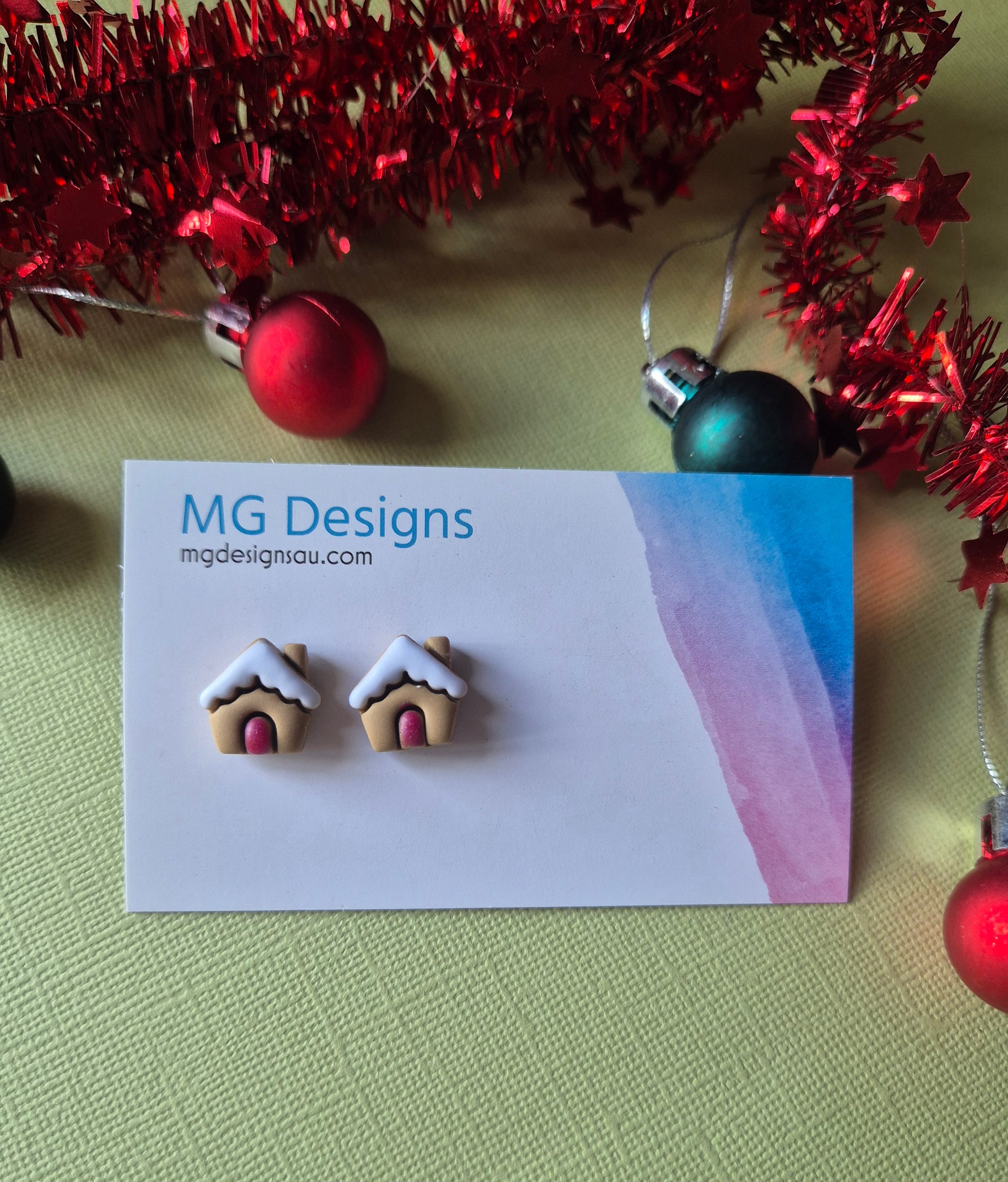 Unleash your inner child with our Gingerbread House stud earrings! These delightful earrings feature a playful twist on the classic holiday treat, complete with white icing detailing. Perfect for adding a festive touch to any outfit.