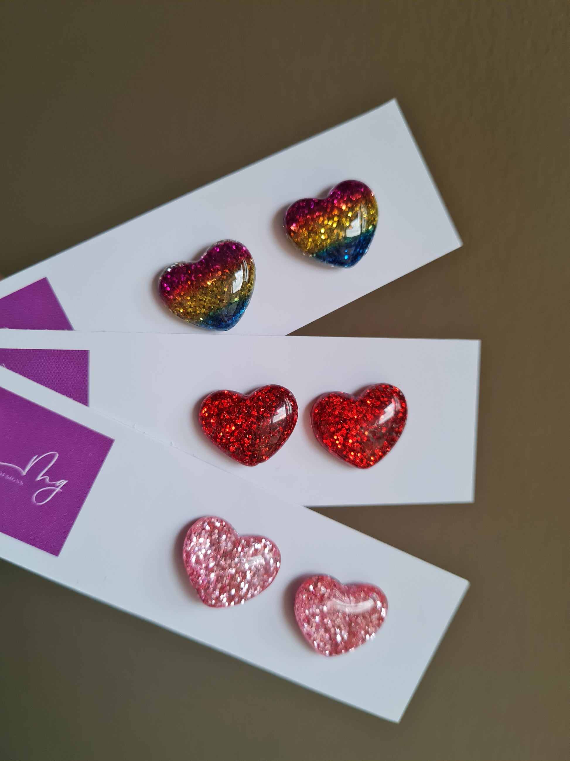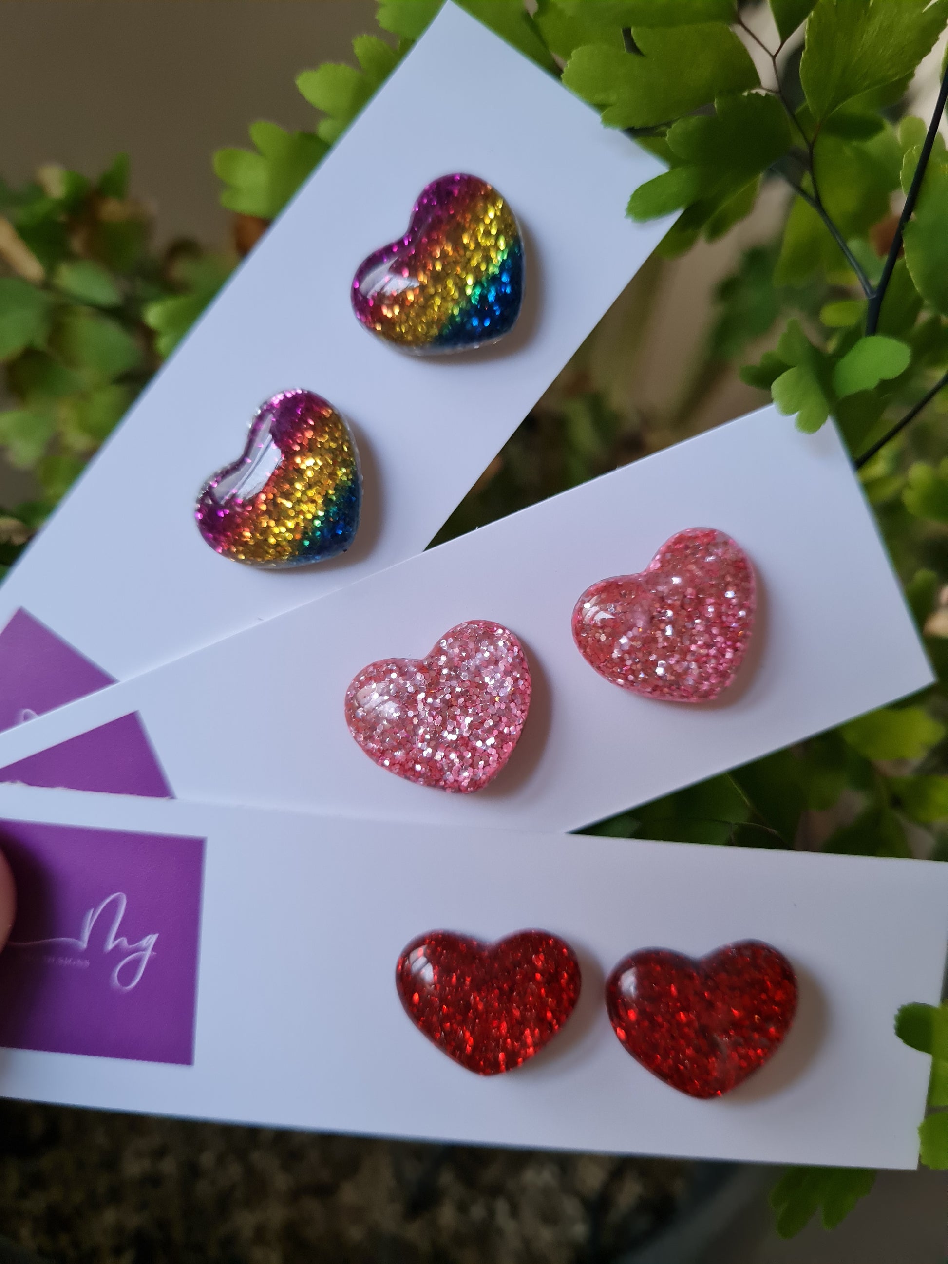 Hand made resin earrings made using quality products. These earrings come in a very limited number of shapes and are all one of a kind pieces. No two are the same. Due to being hand made, there may be some slight imperfections in the resin components. Metal earring stud component made from surgical steel.