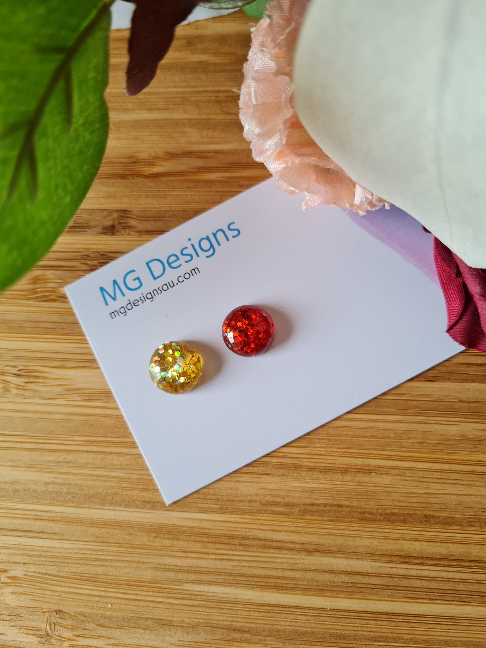 Our football coloured studs are perfect for all occasions, but especially when at the game or when supporting your team! They are perfect for all ages and look great in all of our glitter range. There may be slight differences in each pair due to glitter positioning.