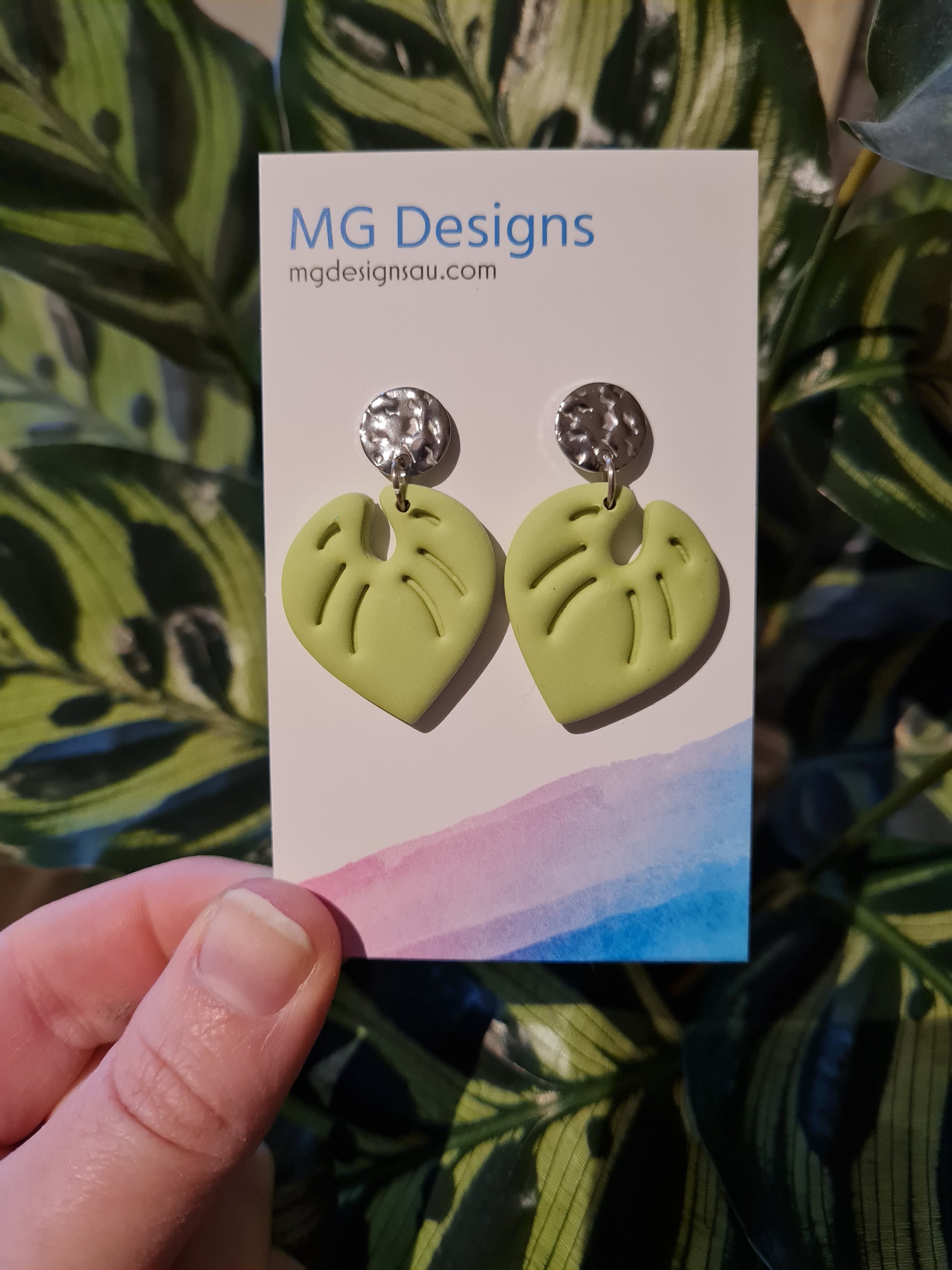 The Pippa earring offers a timelessly classic look, with its light green philodendron inspired leaf. Its simple design, makes it perfect for nature lovers. Perfect for everyday wear or special occasions.