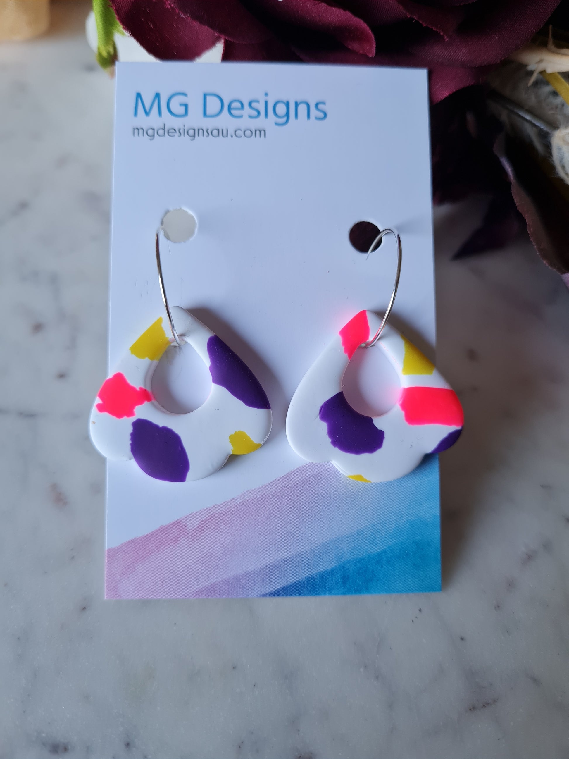 Hand made polymer clay earrings made using quality products. These earrings come in a very limited number of shapes and are all one of a kind pieces. No two are the same. Due to being hand made, there may be some slight imperfections in the polymer clay component. Metal earring components made from stainless steel.