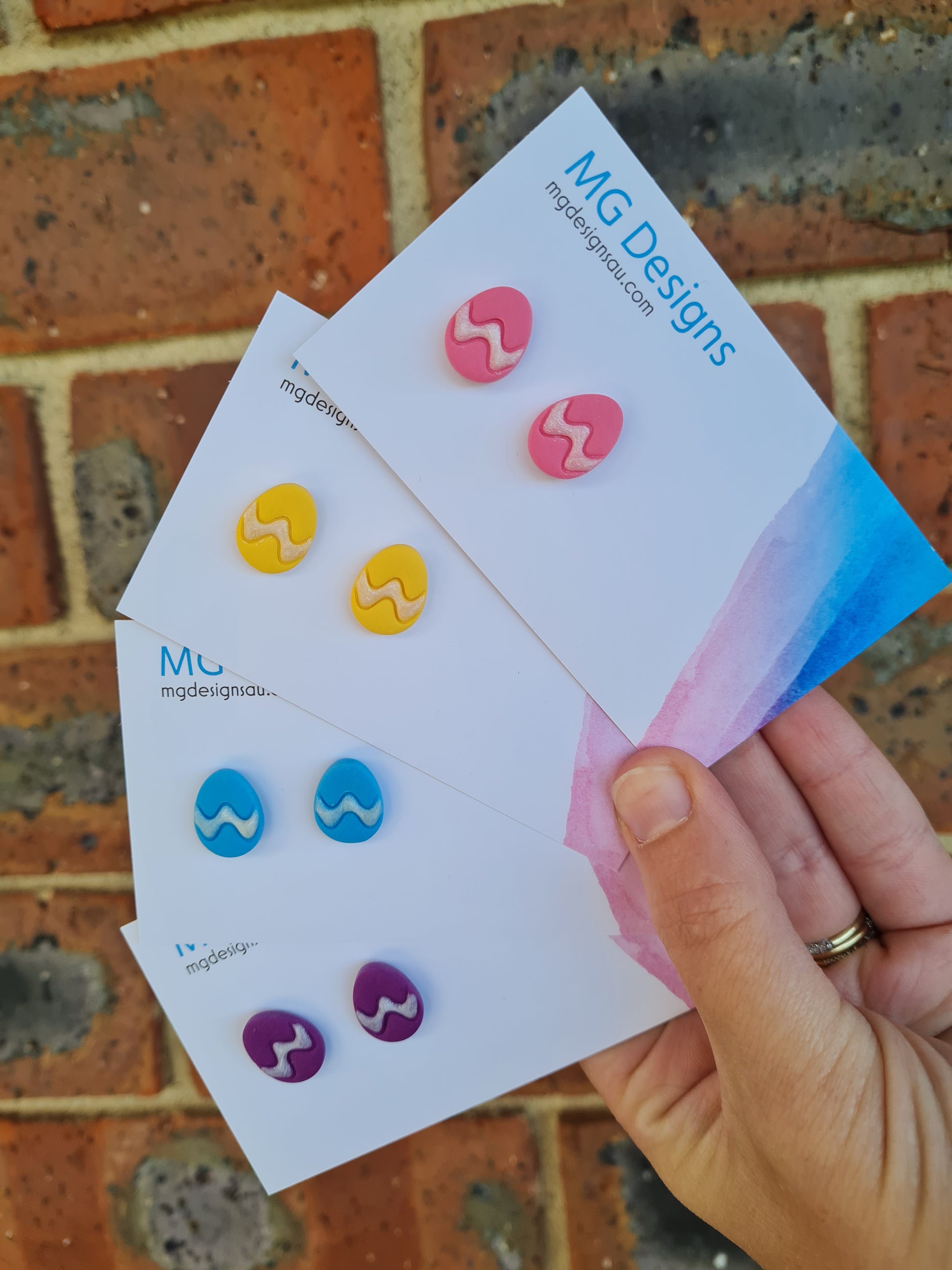 Add some egg-cellent fun to your outfit, with these Easter Egg Stud earrings! With a pearly wave design, these bright and playful studs will bring a touch of whimsy to any look. Hop on over and grab a pair while you can!