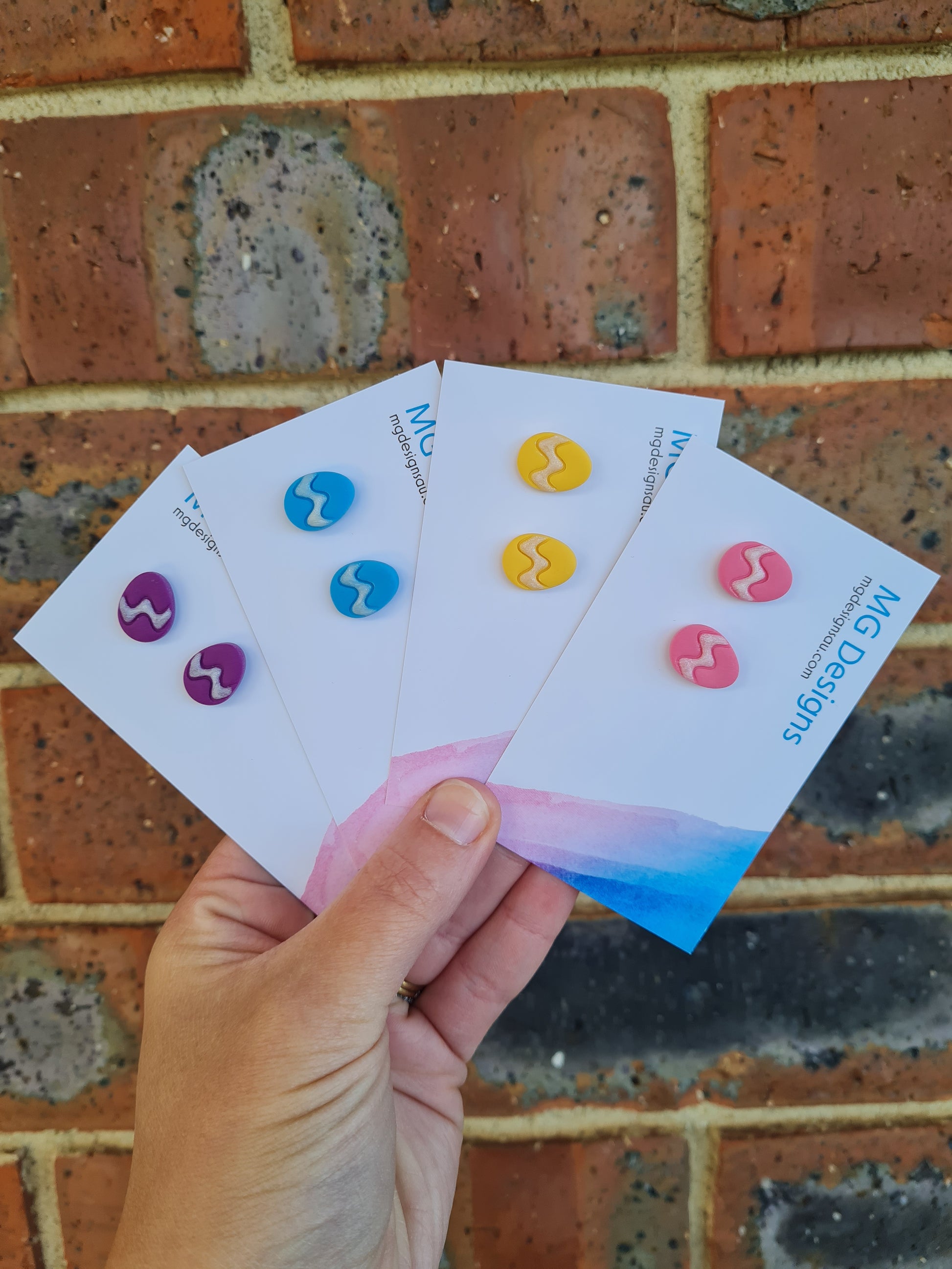 Add some egg-cellent fun to your outfit, with these Easter Egg Stud earrings! With a pearly wave design, these bright and playful studs will bring a touch of whimsy to any look. Hop on over and grab a pair while you can!