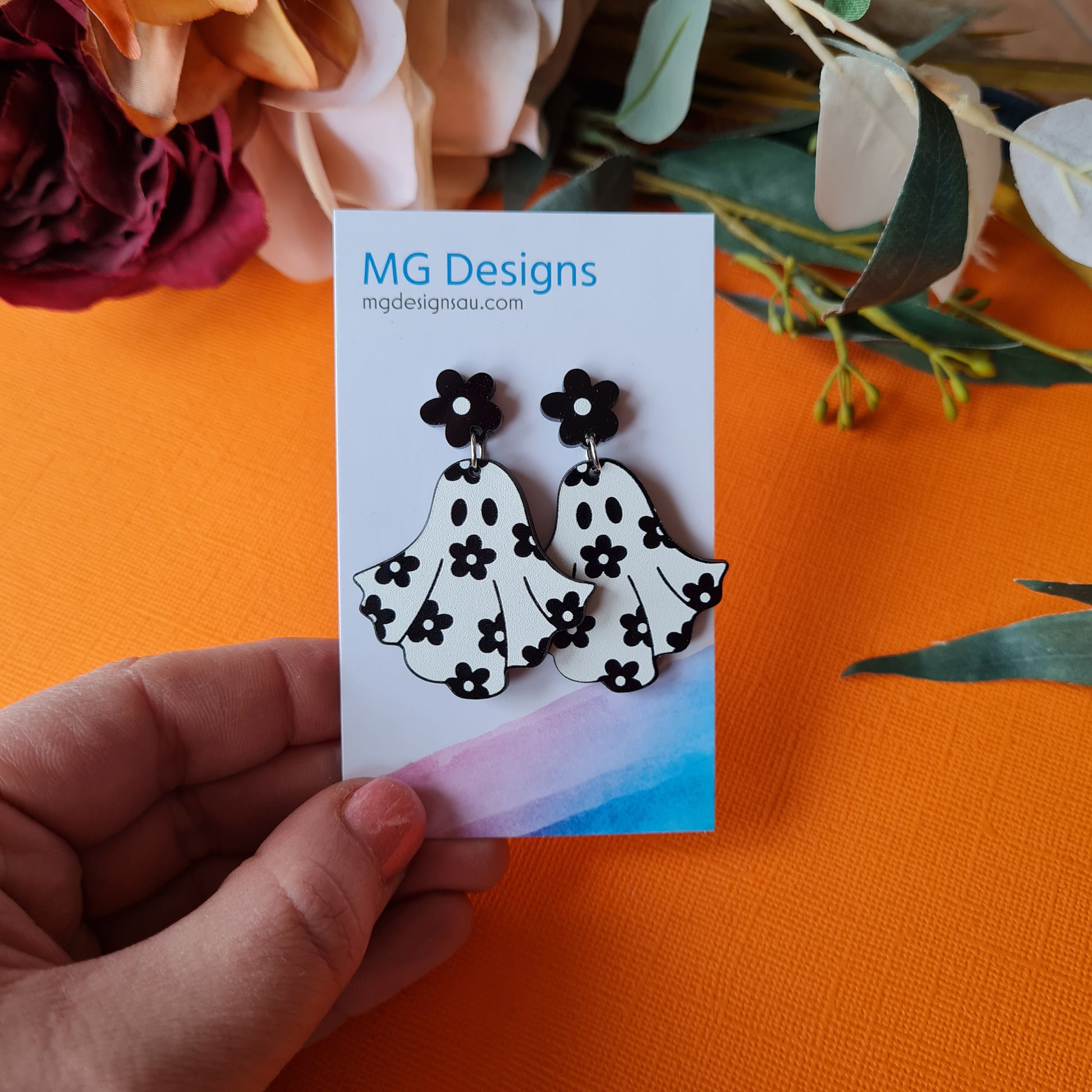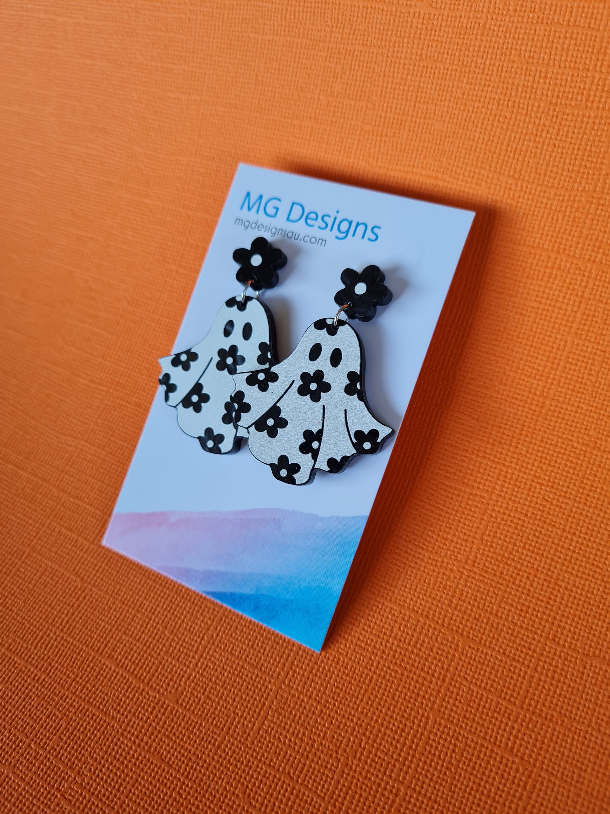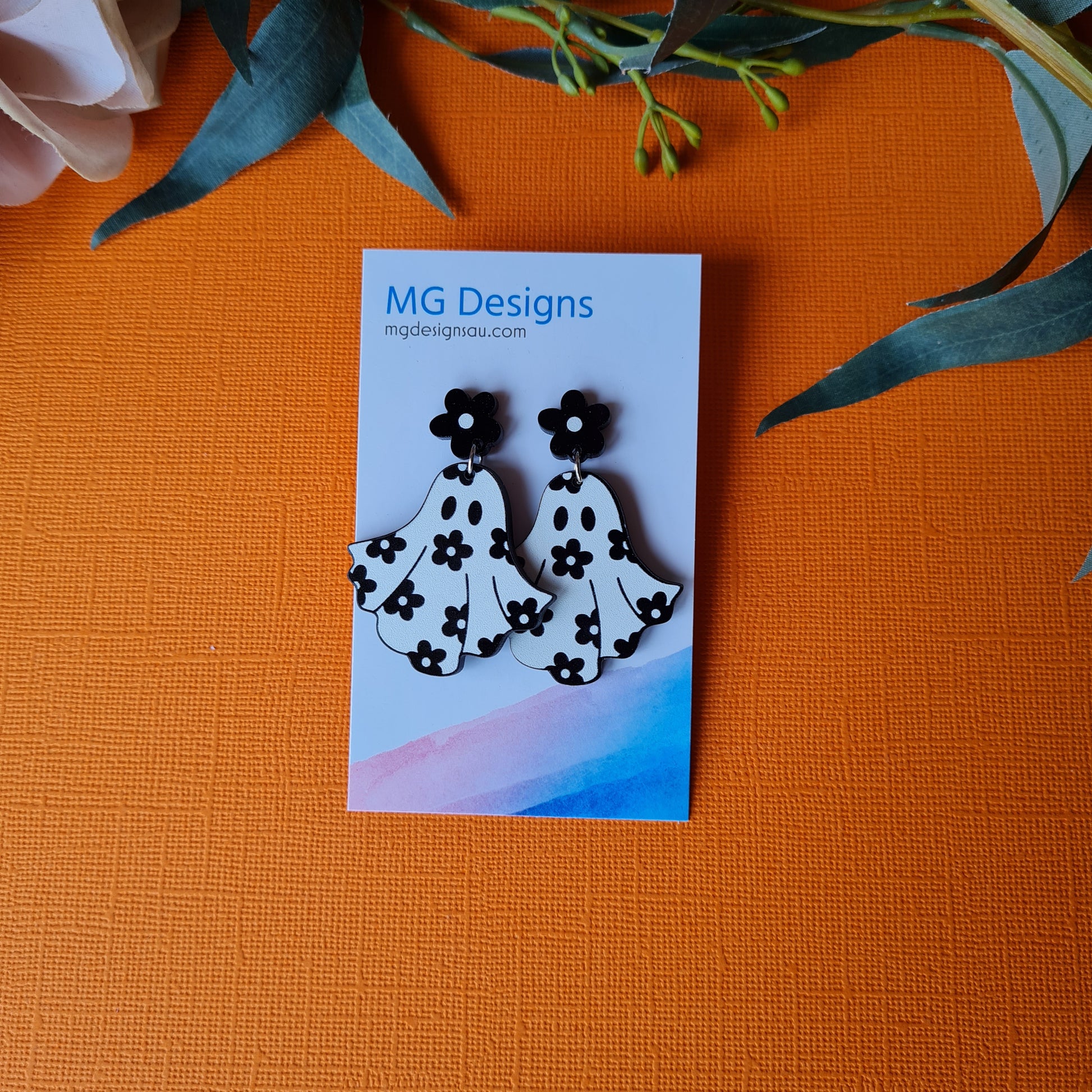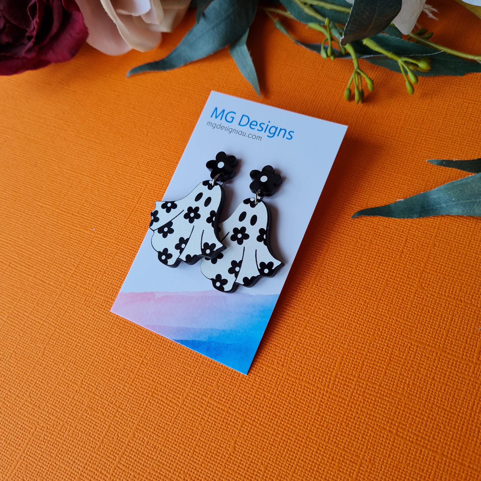 Introducing the Flower Power Ghost earrings – the perfect way to show you care but keep it lighthearted and fun! Featuring an ethereal ghost design with a touch of dark flowery bliss, these classic monochrome earrings are sure to make a statement with everyone you meet. Poof! Magical style!