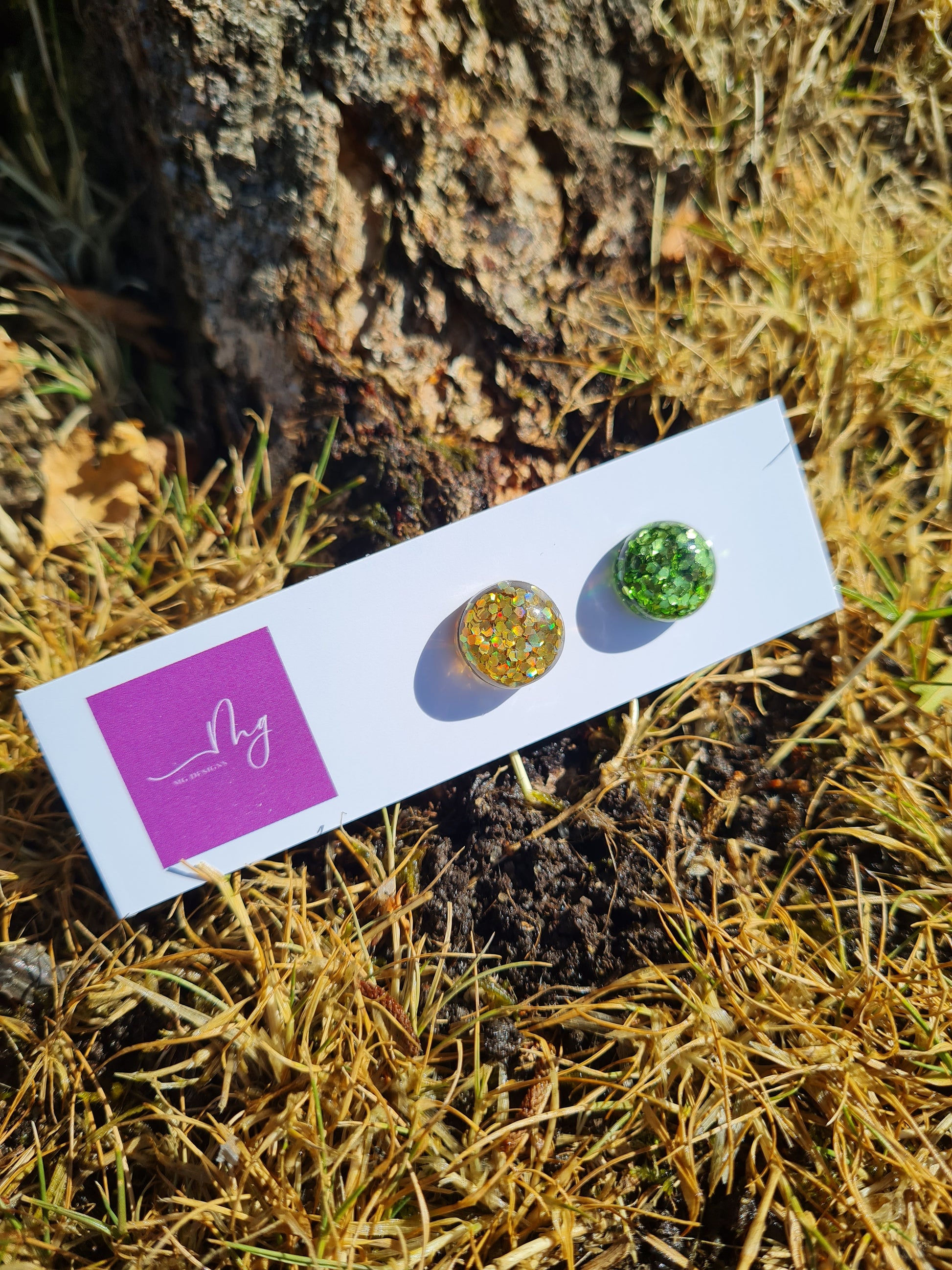 1x Gold Glitter Stud 1x Green Glitter Stud