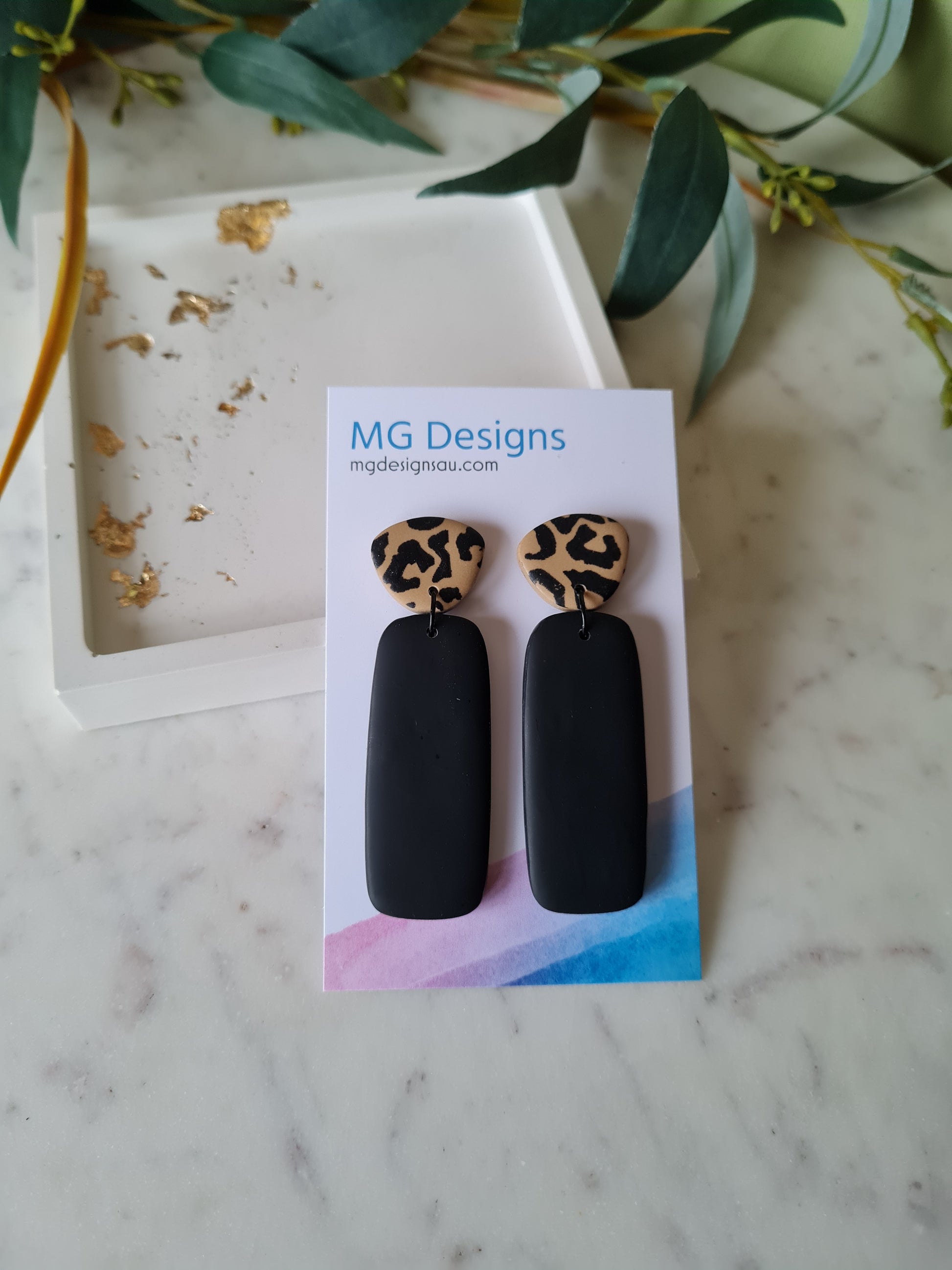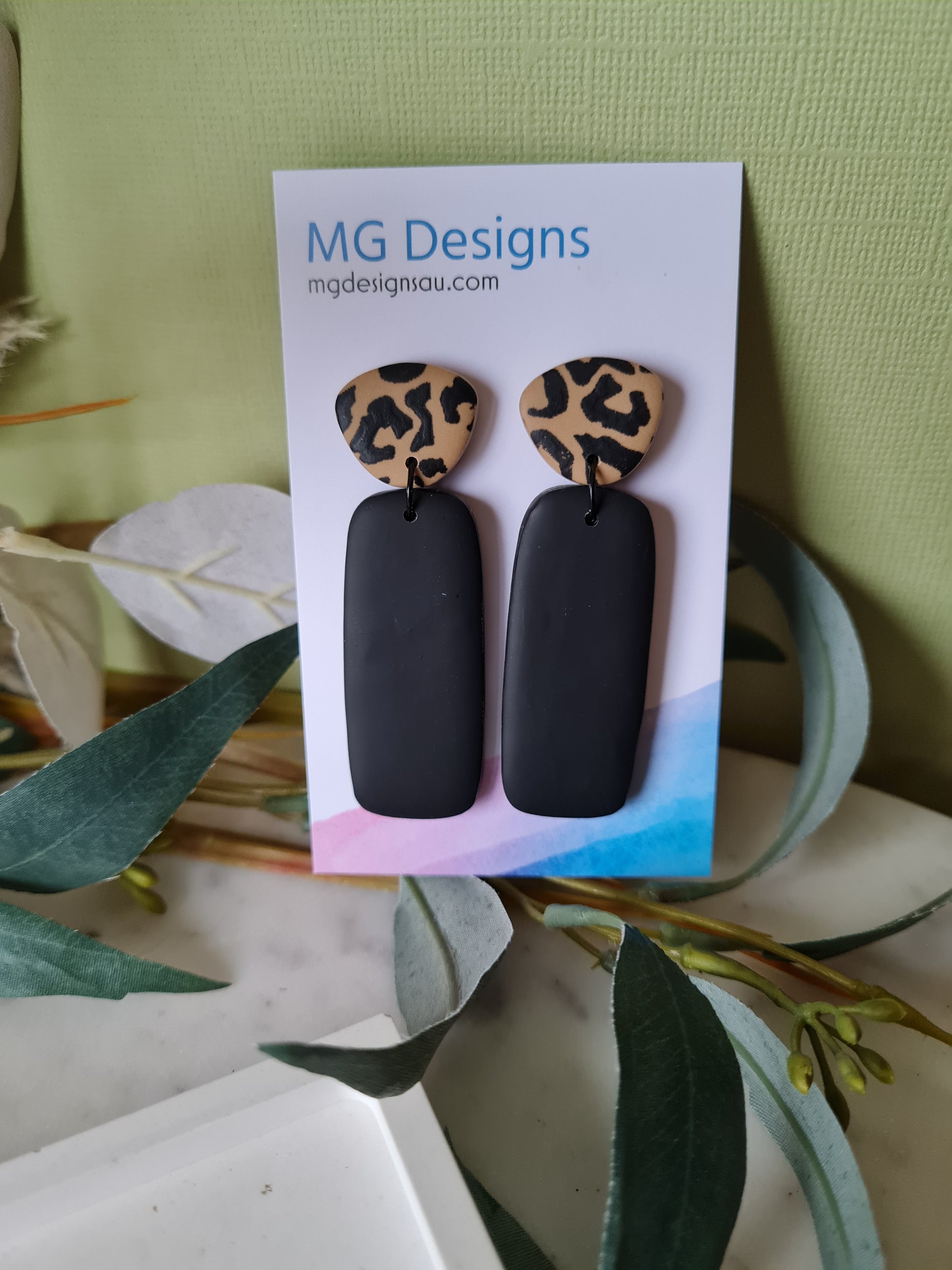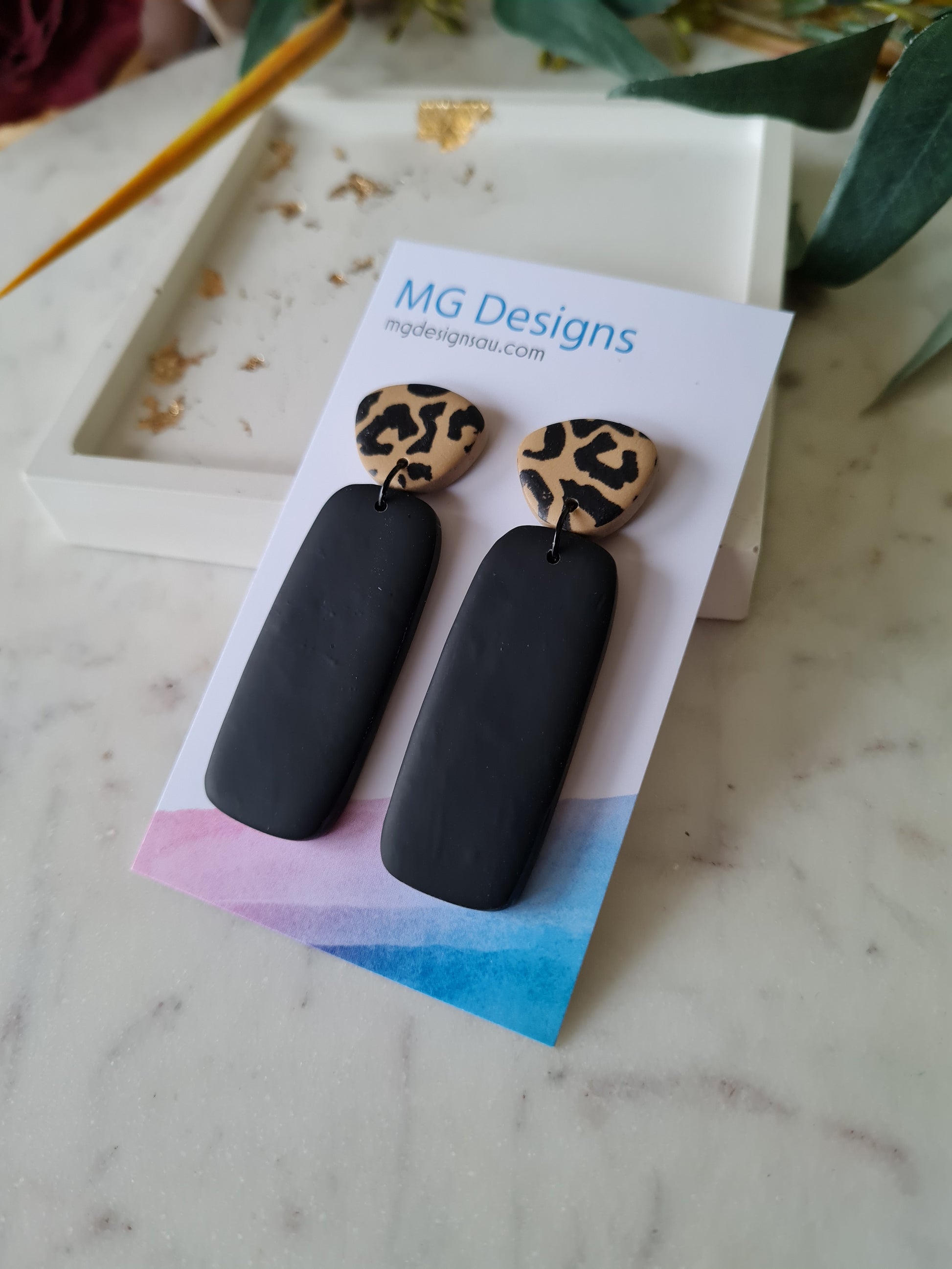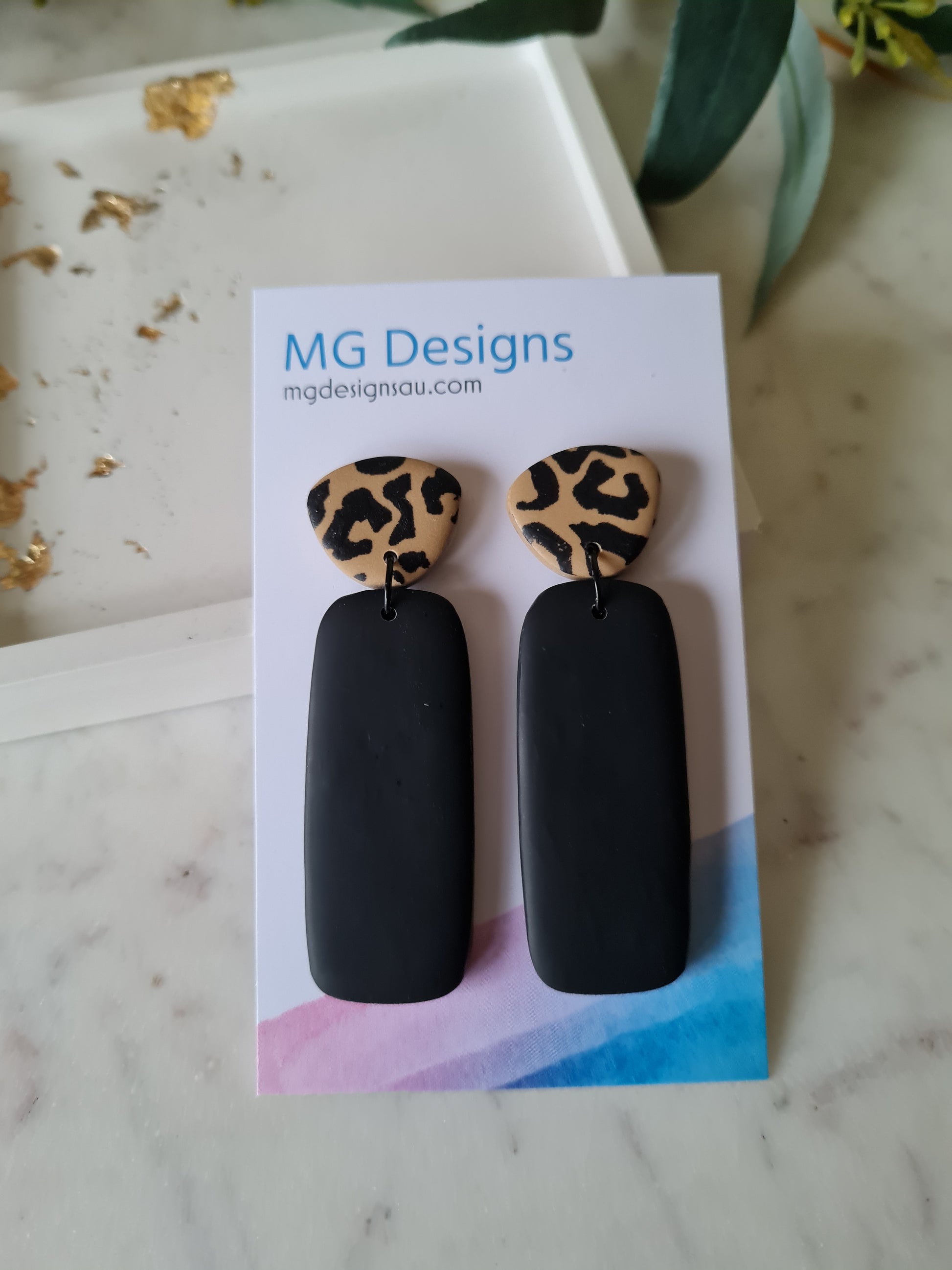 Our Madeline earrings, are delightfully unique in each piece. All handmade with silk screens and acylic paint and polymer clay. The black and brown color combinations provide an eye-catching aesthetic, while the lightweight construction provides comfort and convenience. A perfect accessory to make any look pop.