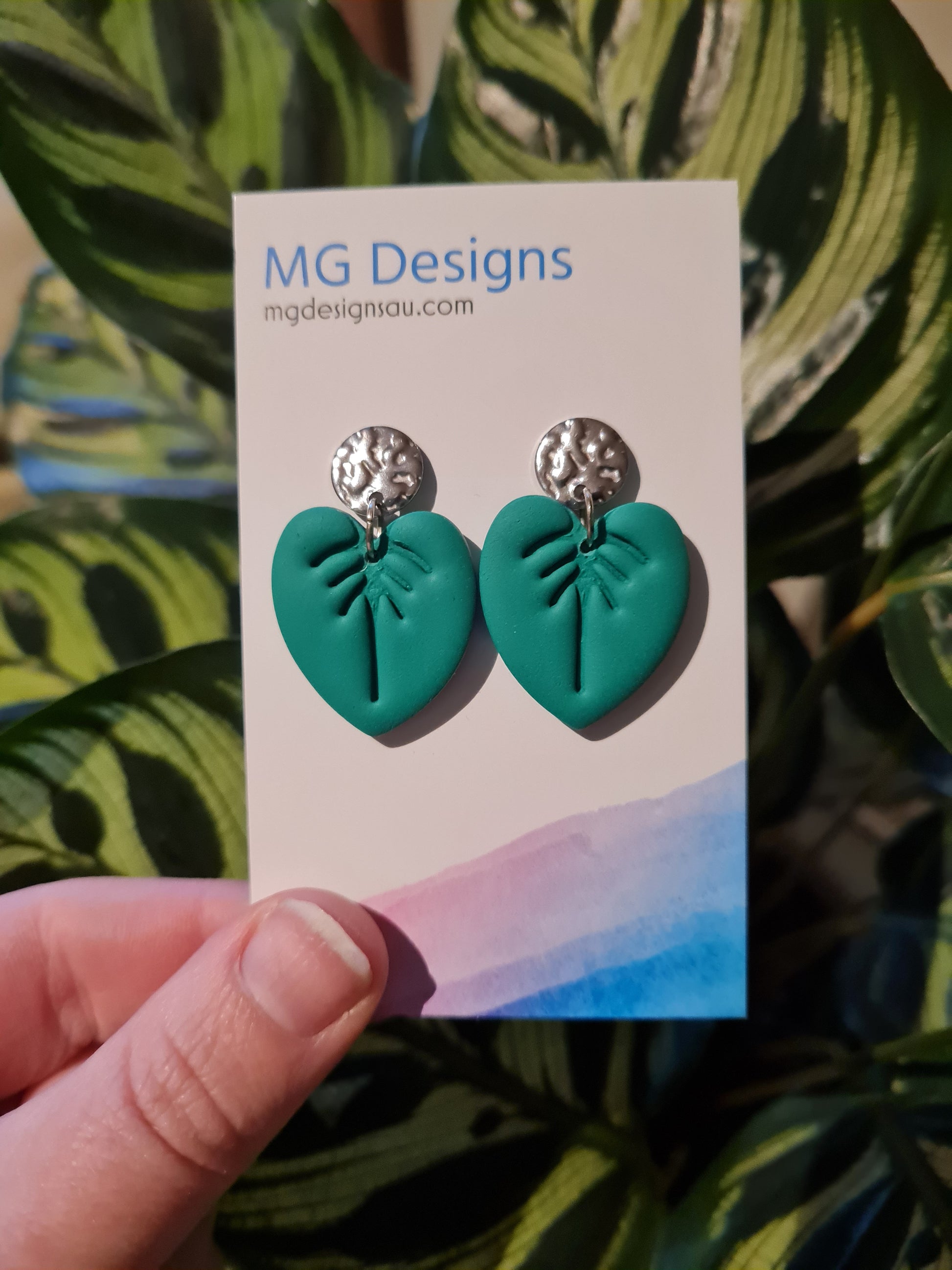 These Millie Earrings are the perfect accessory for the stylish plant lover. Sleek, designed with arrowroot leaf detailing, and available in a dark green hue, these earrings are sure to add a subtle yet bold touch to any look.