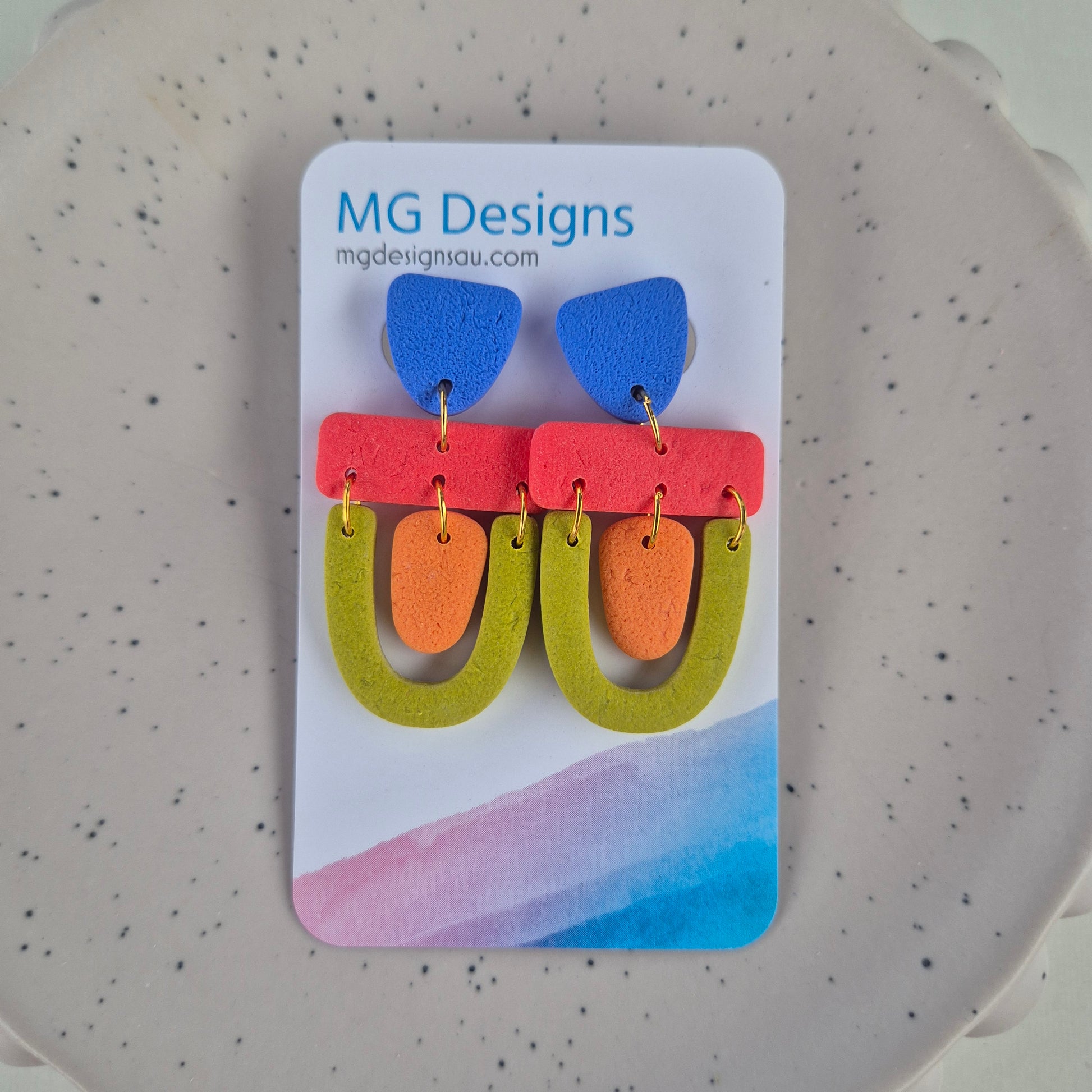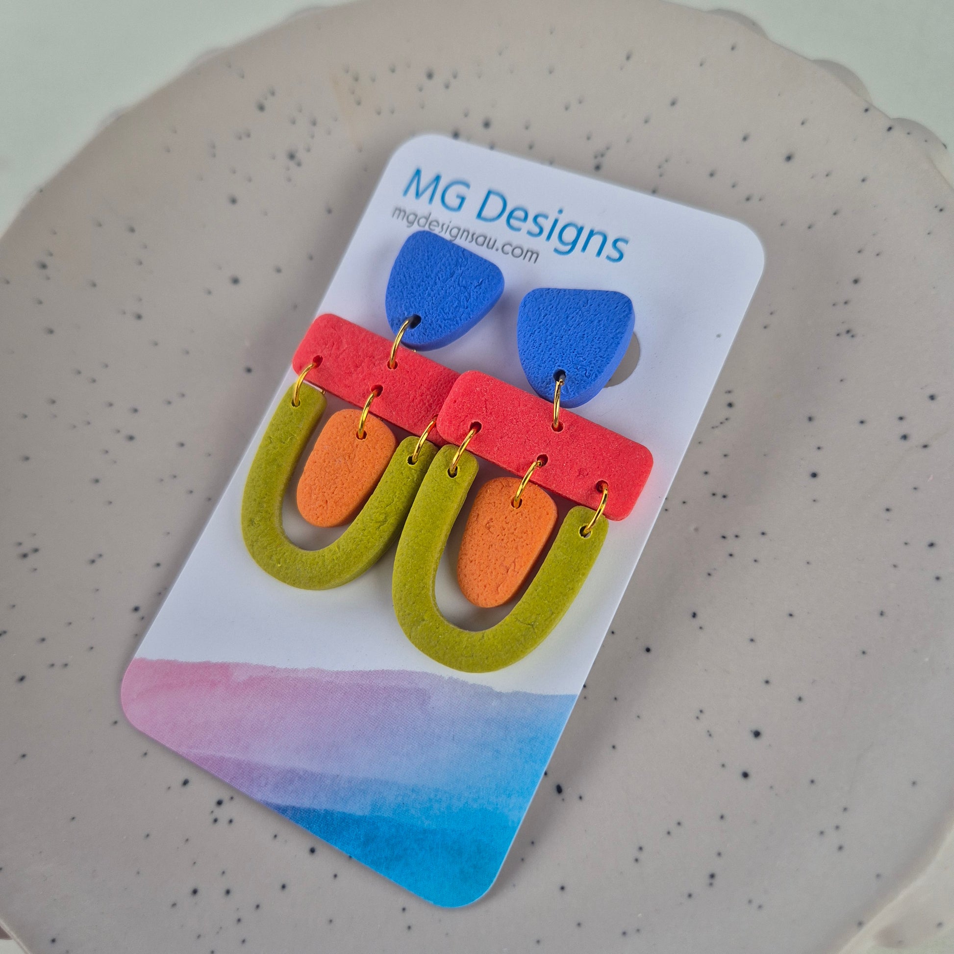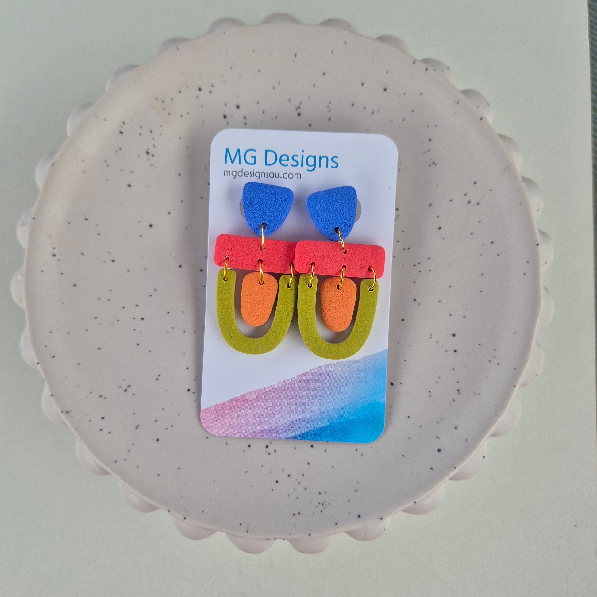 Introducing Naomi in Blue earrings - the perfect accessory for those who like to stand out! With funky geometric shapes in vibrant neon colors, these earrings are sure to make a bright statement. Add a pop of fun to any outfit with Naomi.
