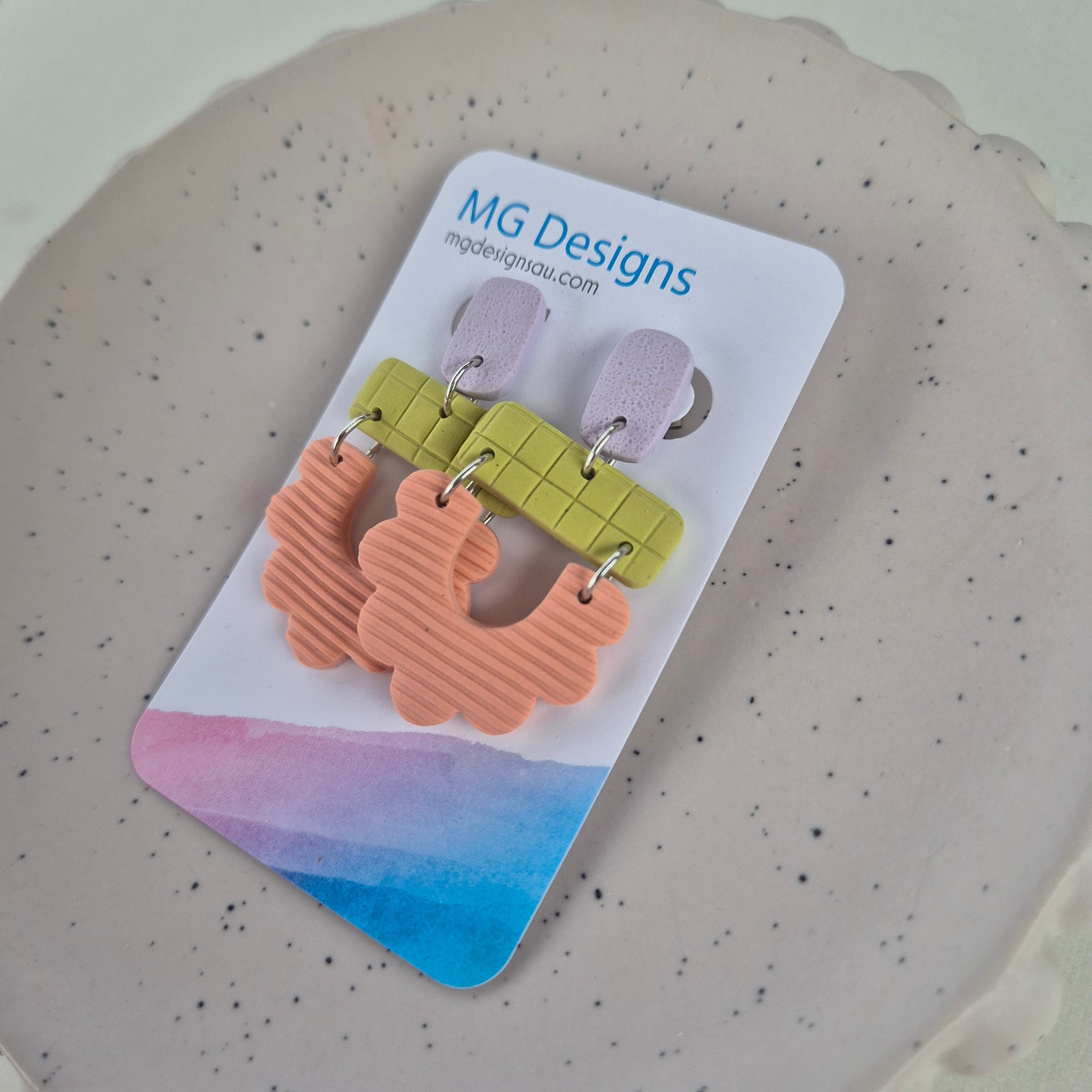 Get fun and funky with the Polly Pastel earring collection! These playful earrings feature a collection of pastel colors and geometric shapes to add a quirky touch to any outfit. Rock the latest trend in a unique and stylish way with this limited release.
