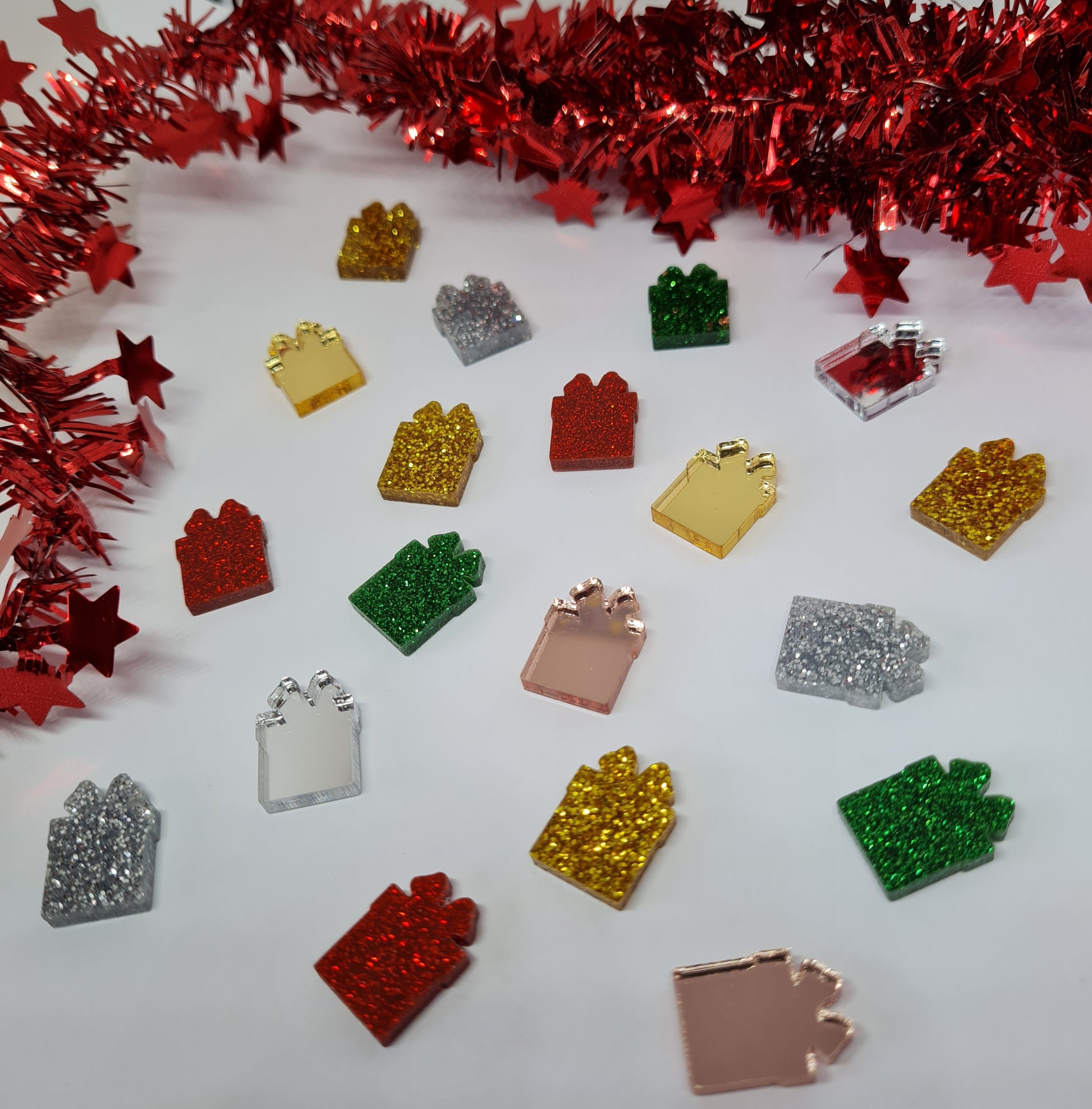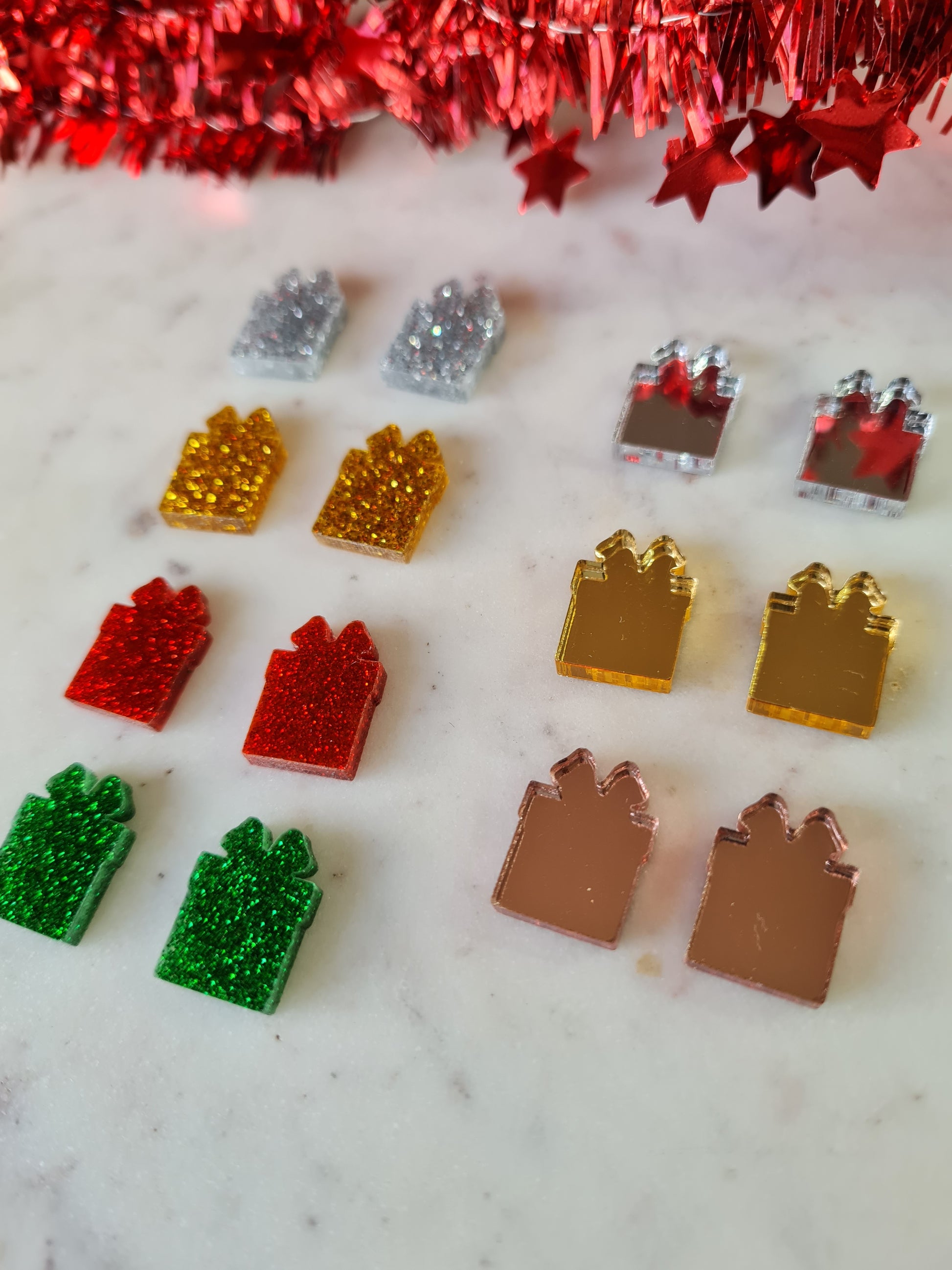 Our present shaped studs are perfect for all occasions. They are perfect for all ages and look so sweet in our three mirrored colours and four glitter colours.