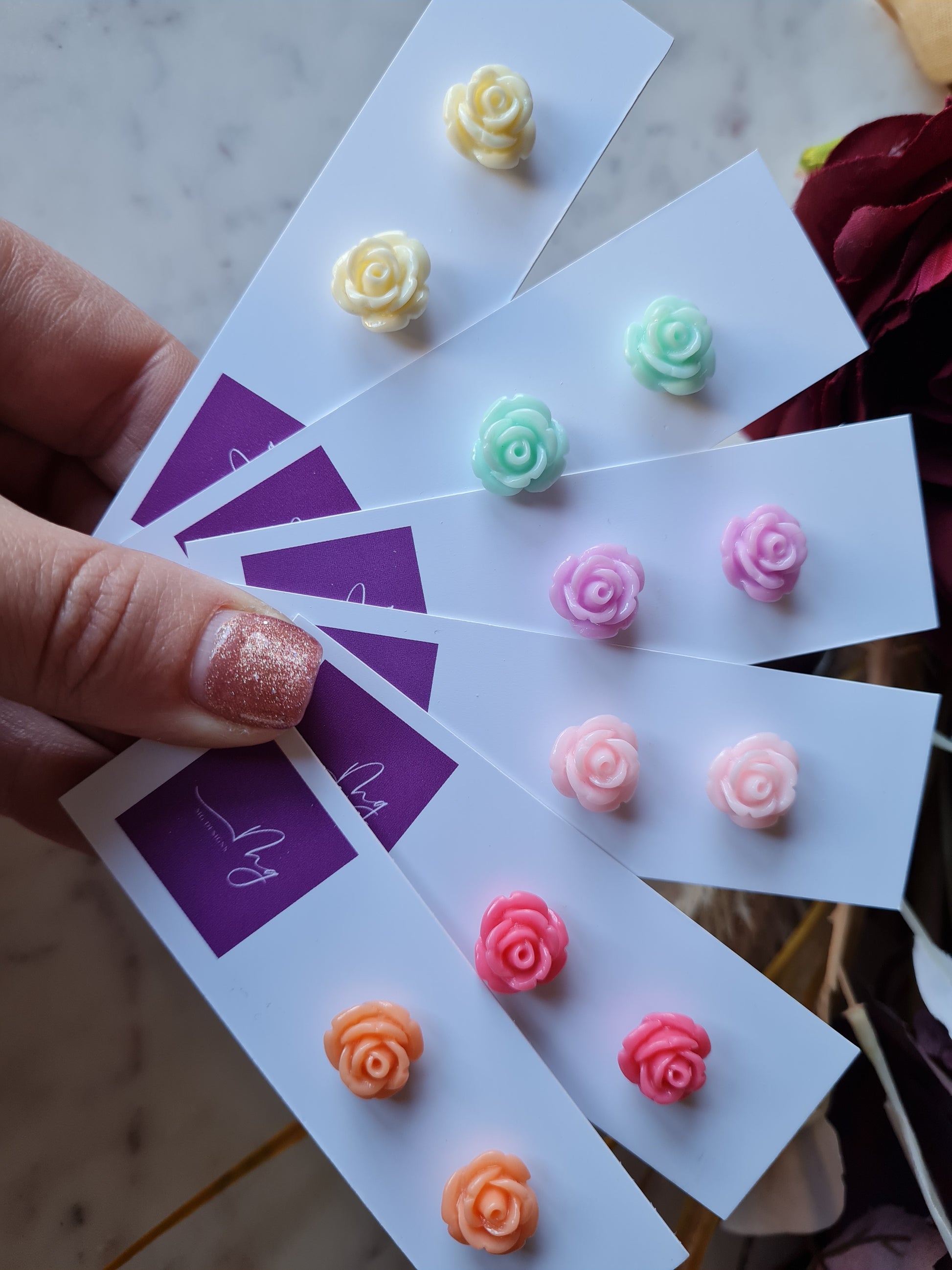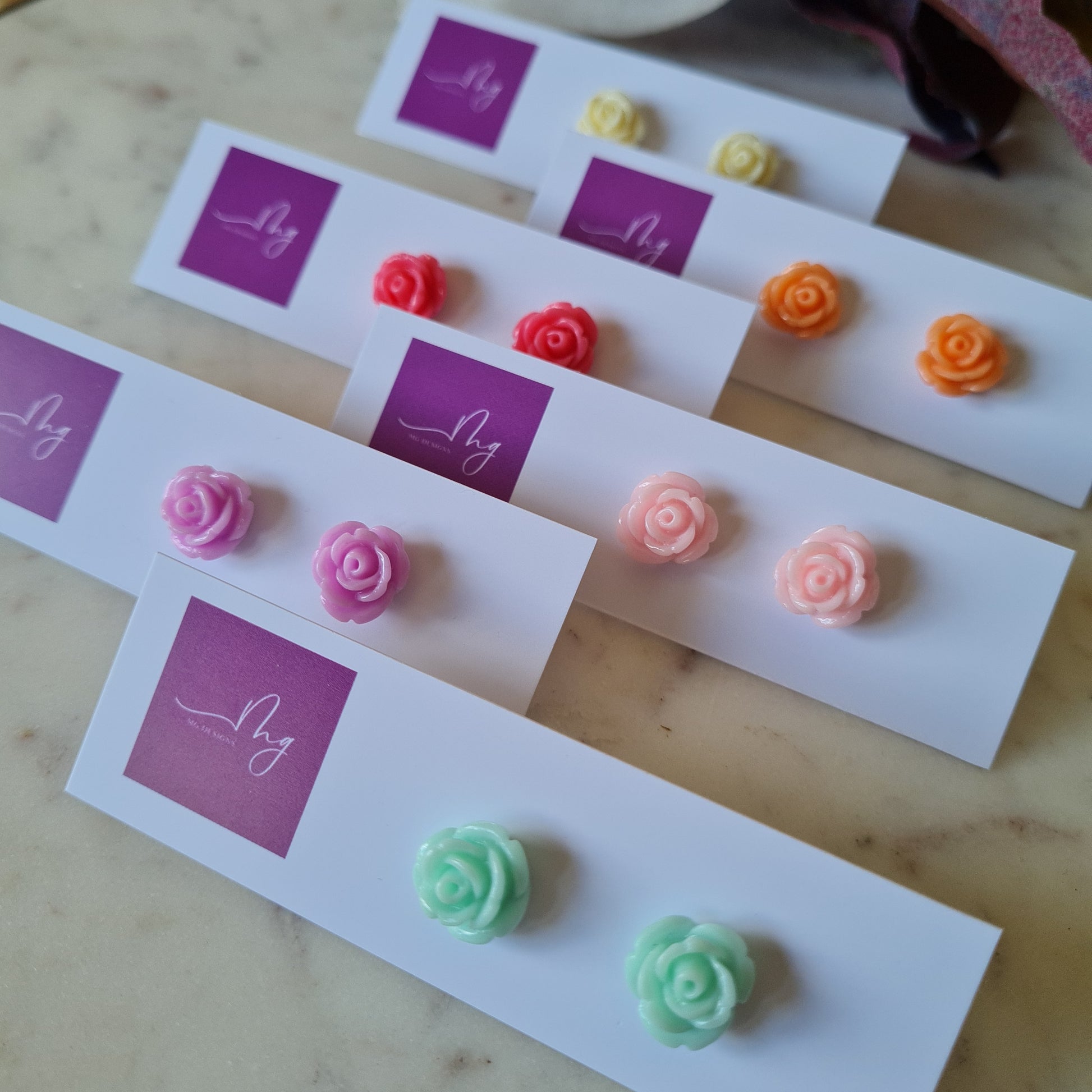 Our Rosie studs are perfect for all occasions. They are perfect for all ages and look so sweet in our six acrylic colours.