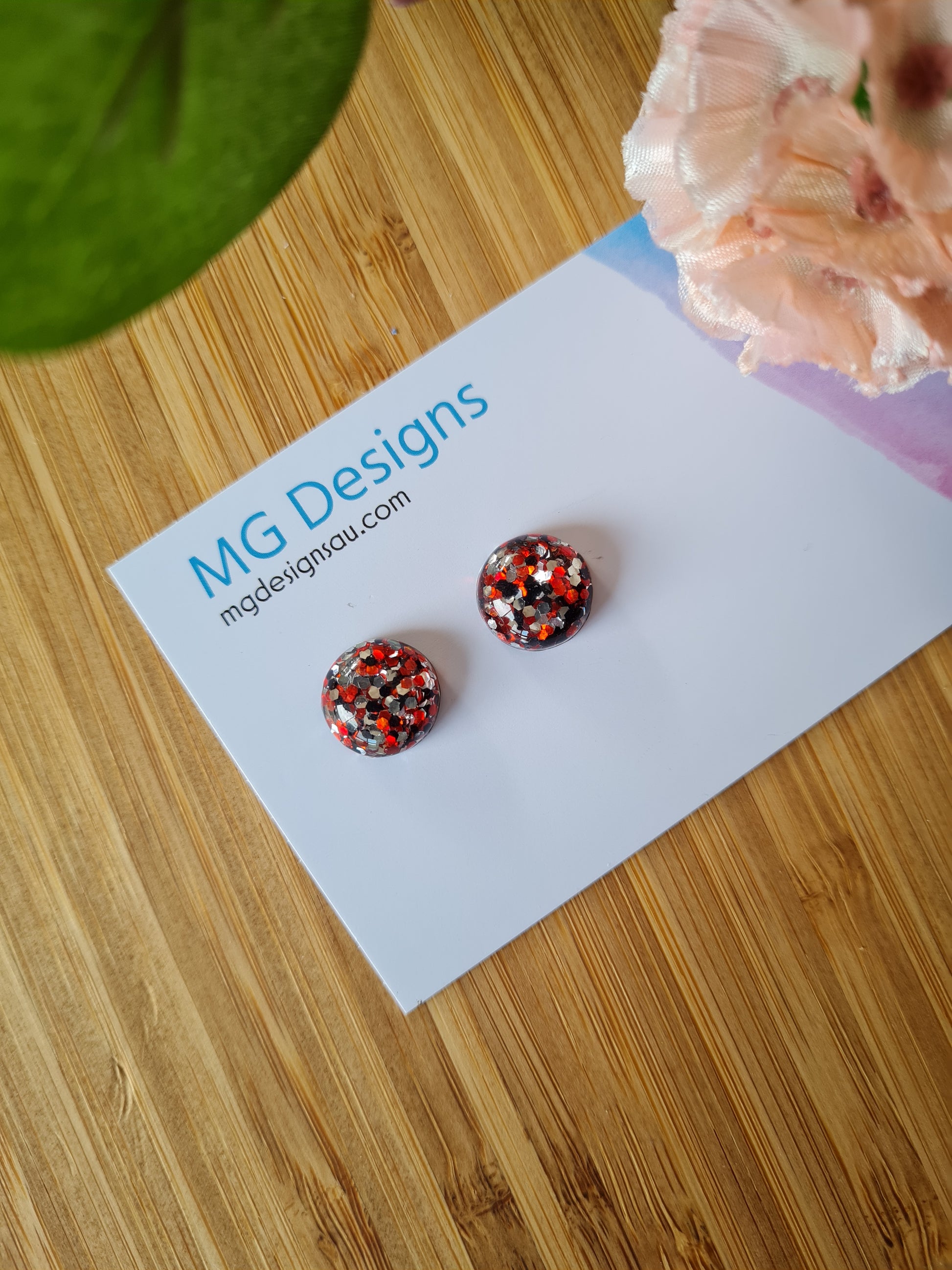 Our football coloured studs are perfect for all occasions, but especially when at the game or when supporting your team! They are perfect for all ages and look great in all of our glitter range. There may be slight differences in each pair due to glitter positioning.