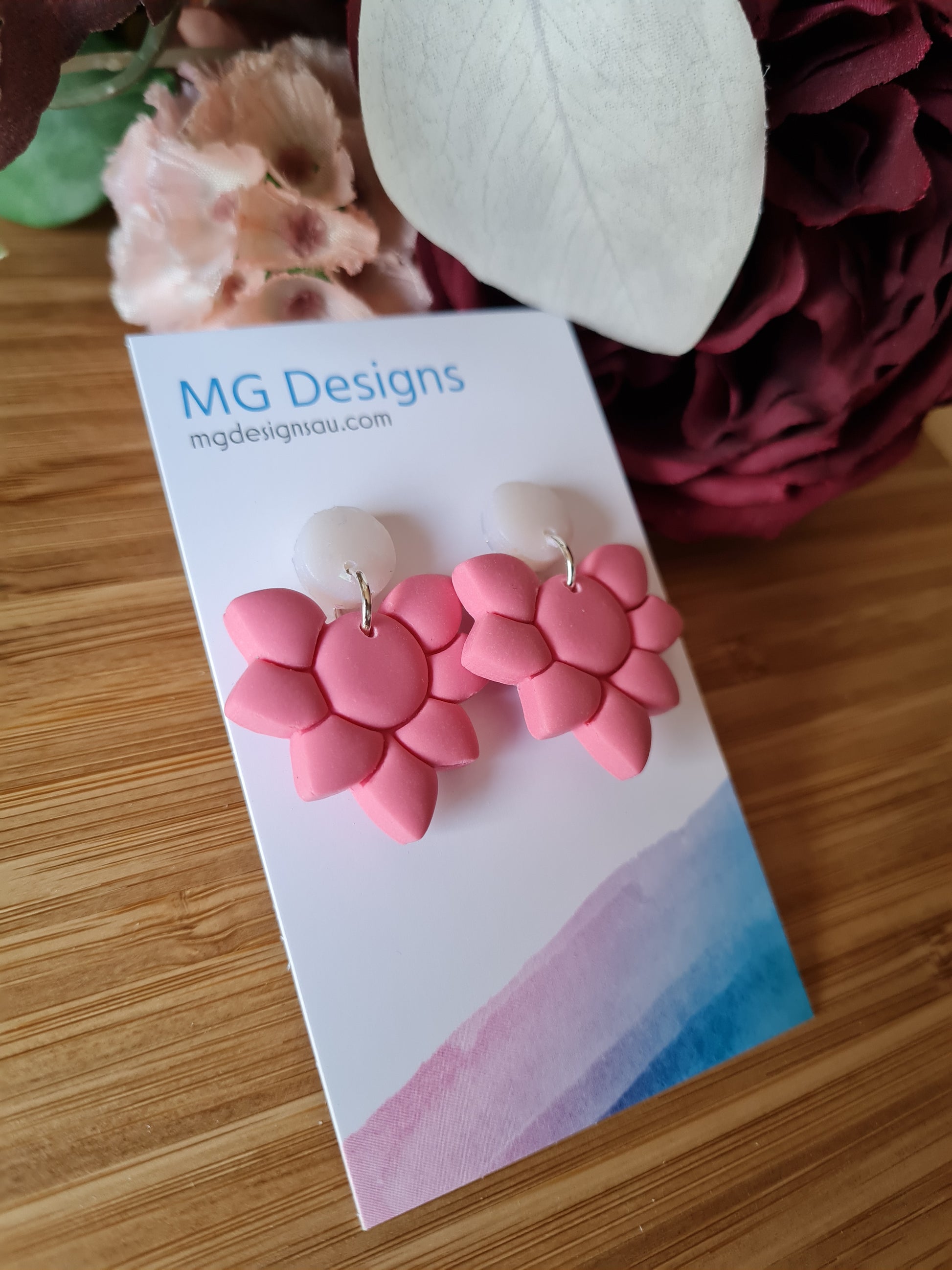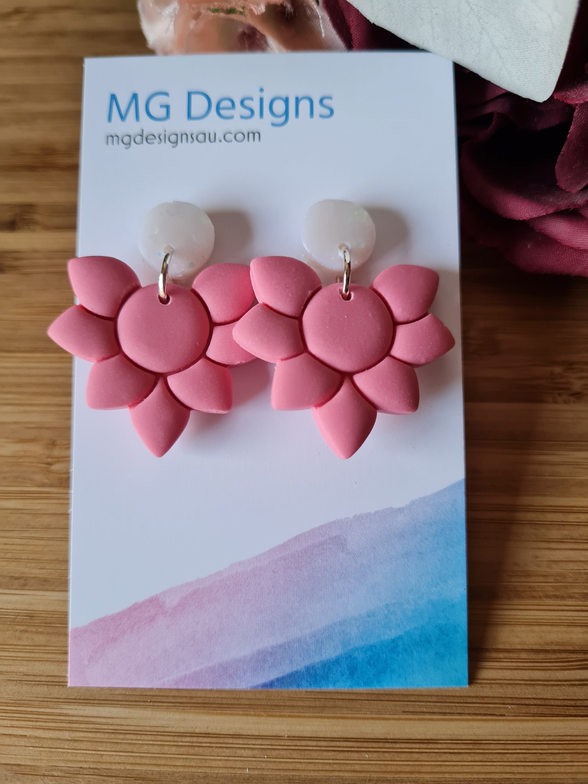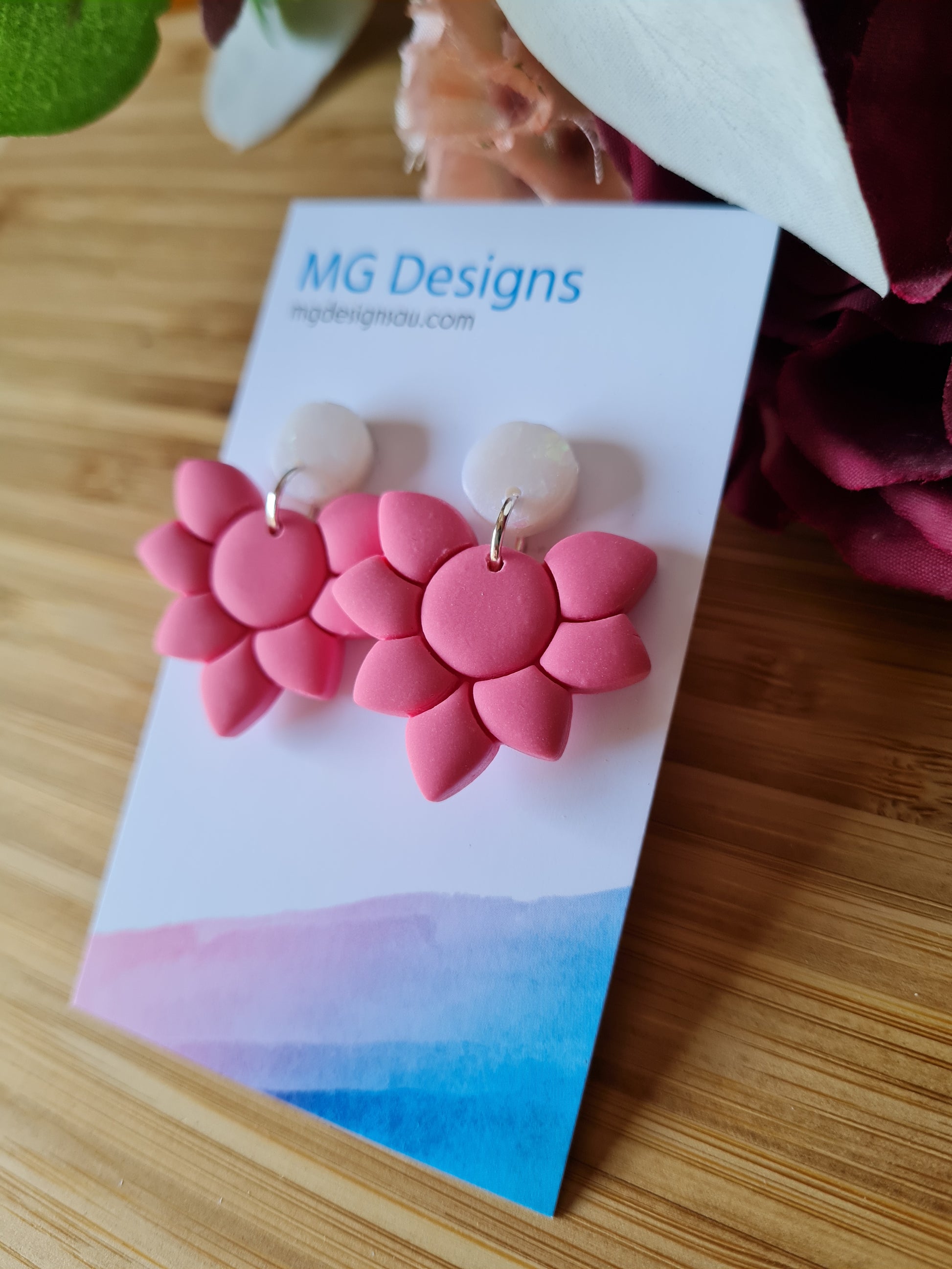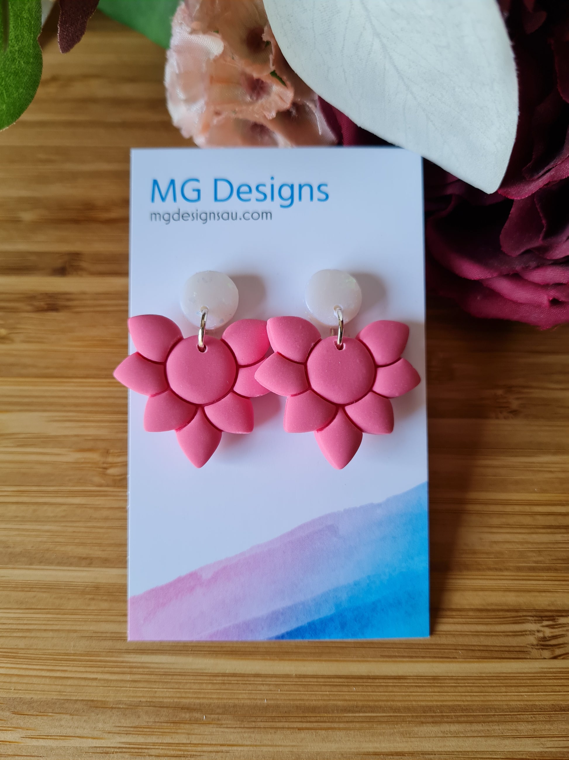 The Sophie Drop earrings are the perfect addition to any look. These earrings feature a Opal look polymer clay stud and are a classic elegant design, that is simple yet stunning. A pink statement piece that adds a subtle sophistication.