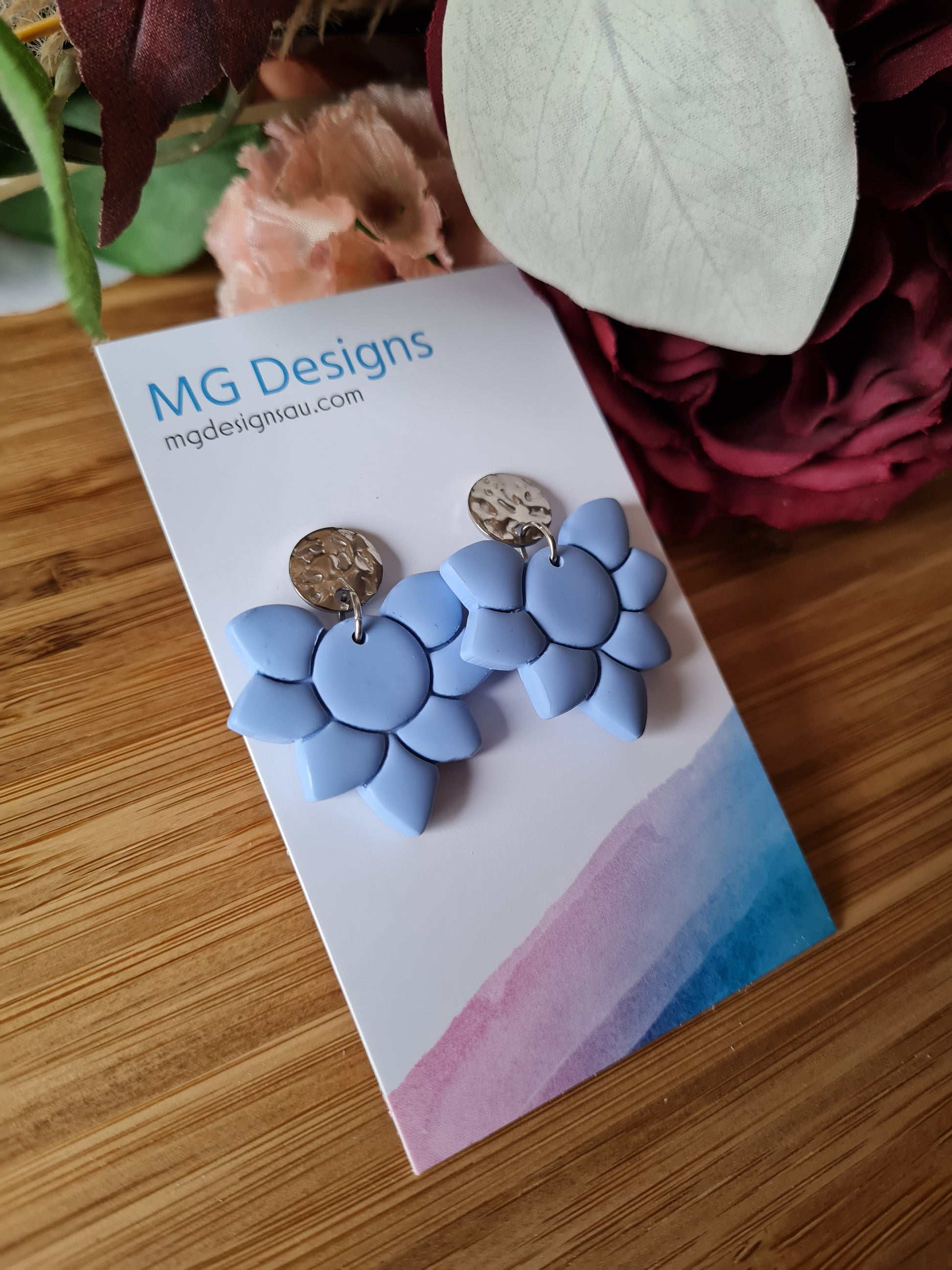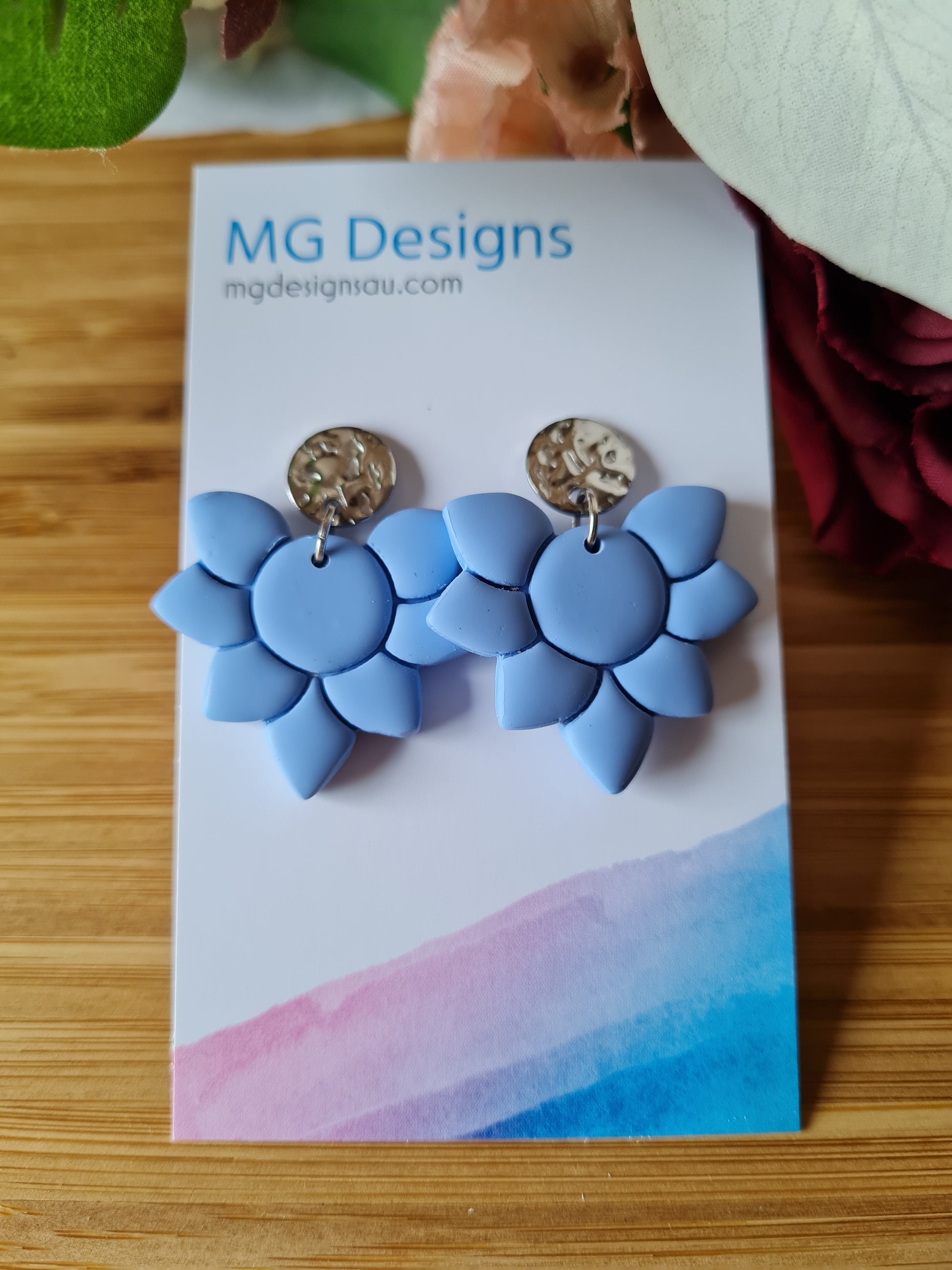The Sophie Drop earrings are the perfect addition to any look. These earrings feature a Silver textured stud and are a classic elegant design, that is simple yet stunning. A light blue statement piece that adds a subtle sophistication.