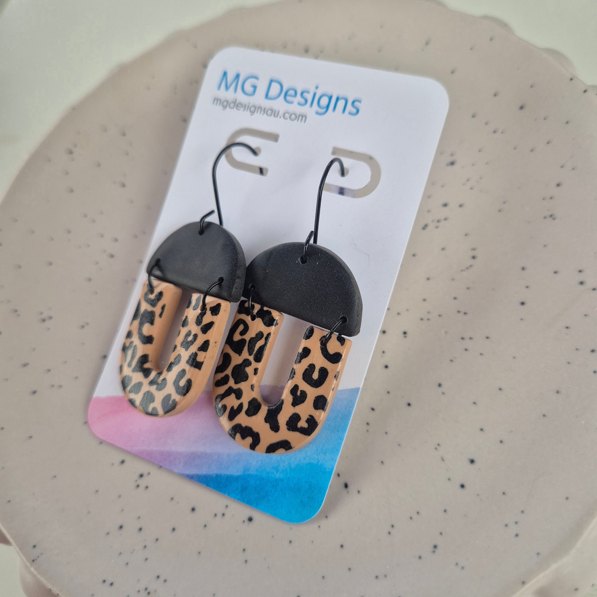 Our Tahni earrings, are delightfully unique in each piece. All handmade with silk screens and acylic paint and polymer clay. The black and brown color combinations provide an eye-catching aesthetic, while the lightweight construction provides comfort and convenience. A perfect accessory to make any look pop.