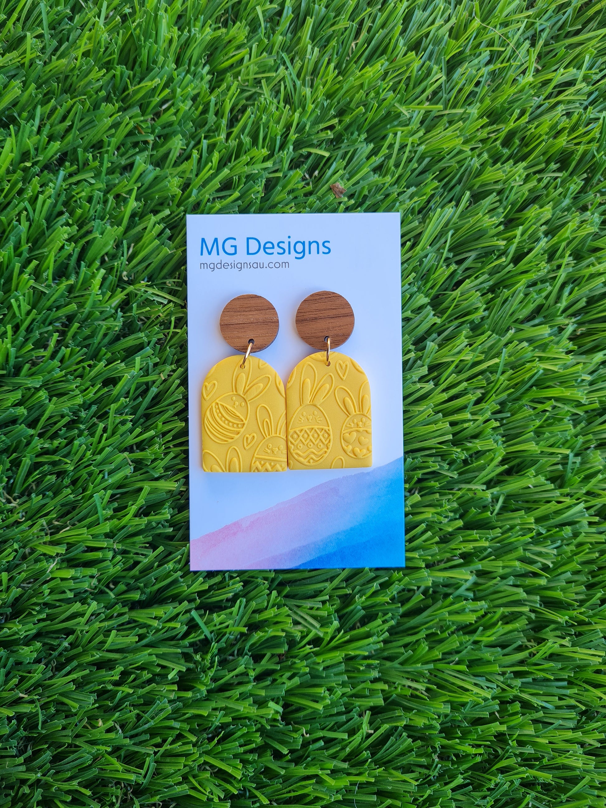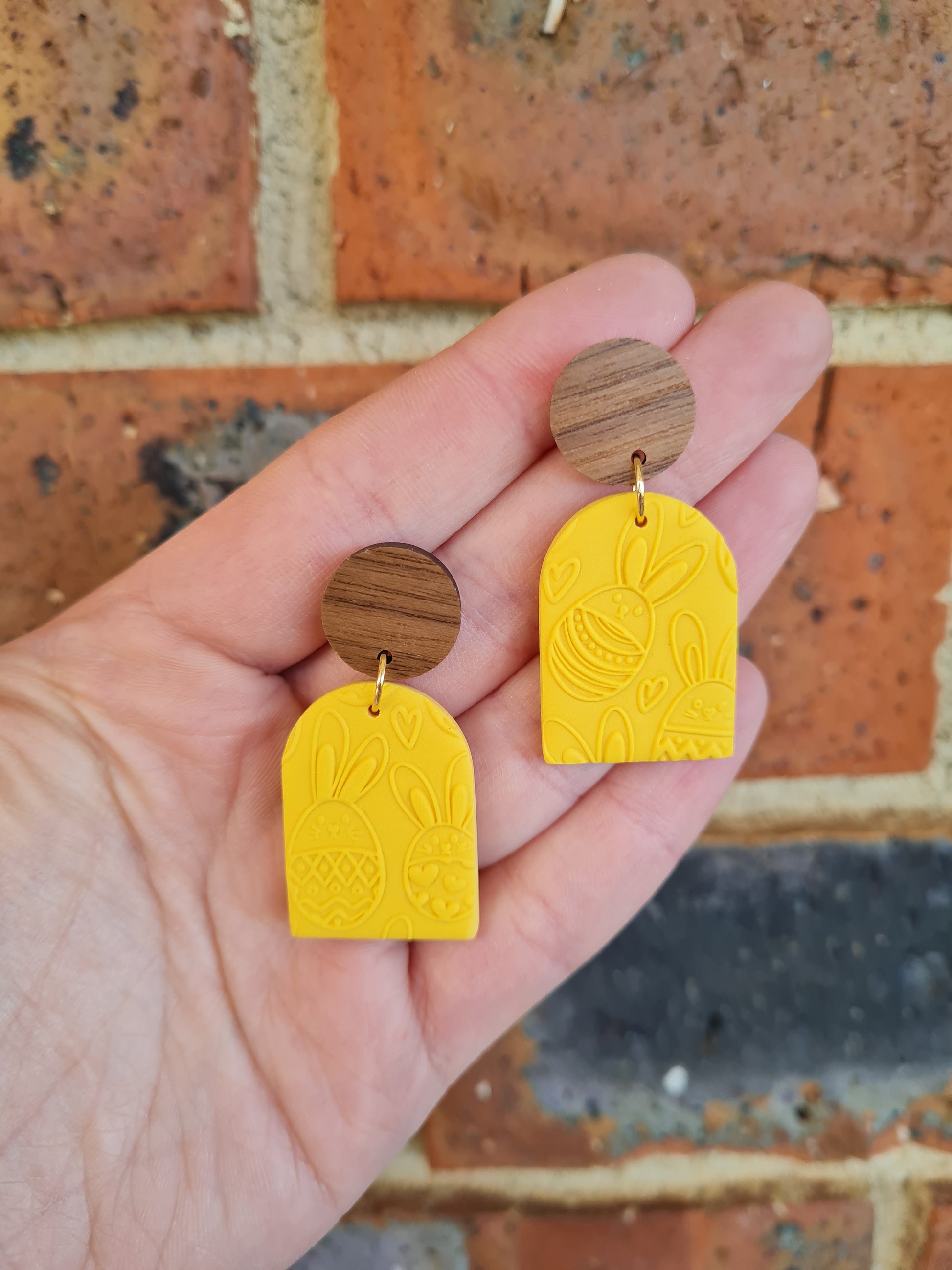 Get ready to hop into Easter with these arch-shaped earrings featuring adorable rabbit prints! The wooden stud tops add a touch of simplicity and elegance to these fun and playful accessories. Perfect for adding a quirky touch to your holiday outfit.